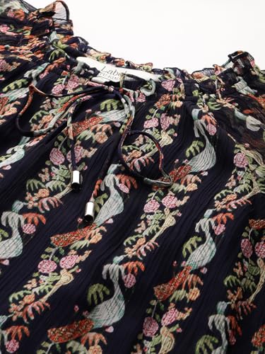 Label RITU KUMAR Round Neck Full Sleeves Printed Top with Inner Navy