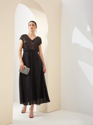 • Product Material :-Polyester,Sleeves :-Short Sleeves,Color :-Black,Pattern :-Embellished,Length :-Maxi,Closure :-Zip,Wash Care :-Dry Clean Only