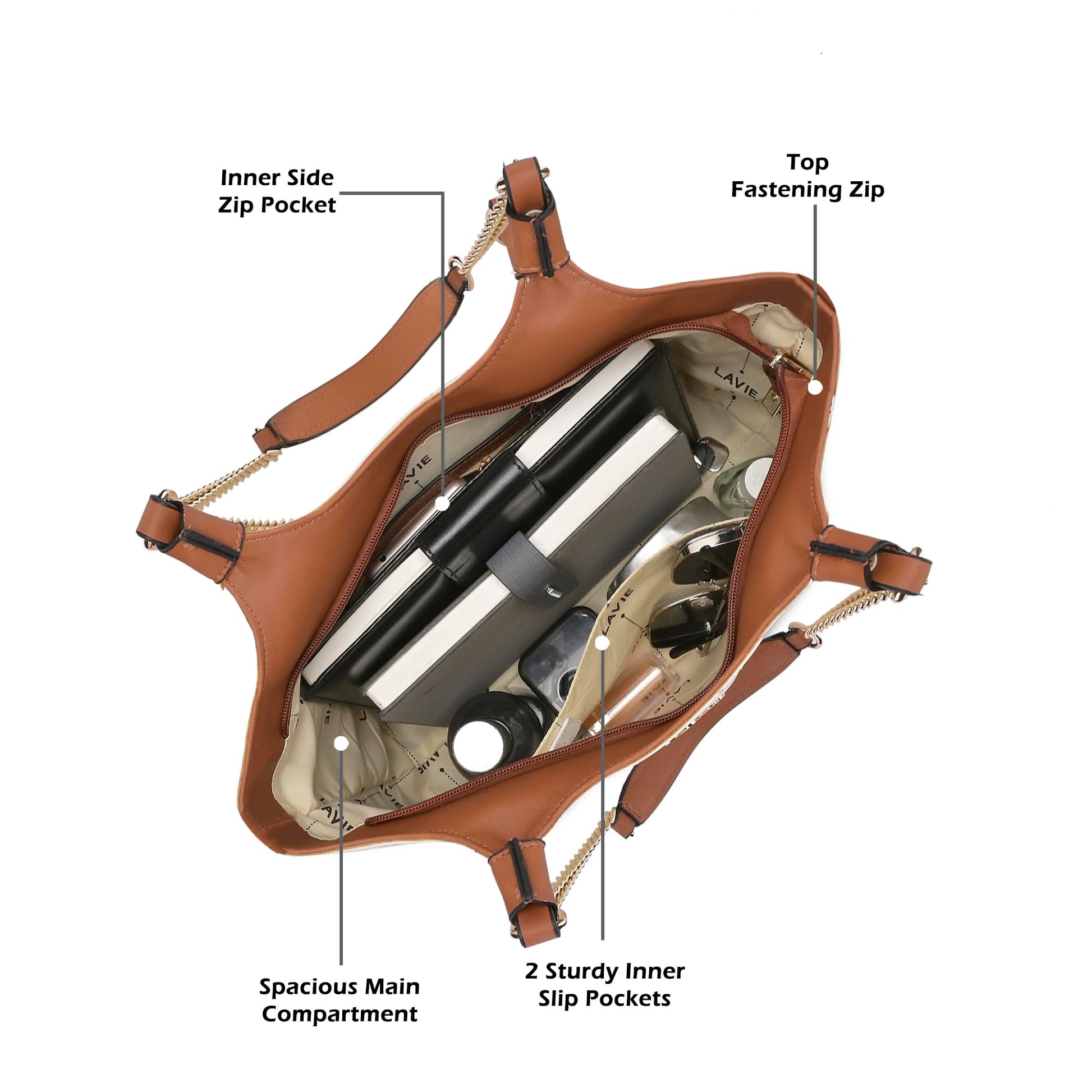 - Showcasing Lavie's new monogram, this tote offers both style and practicality.