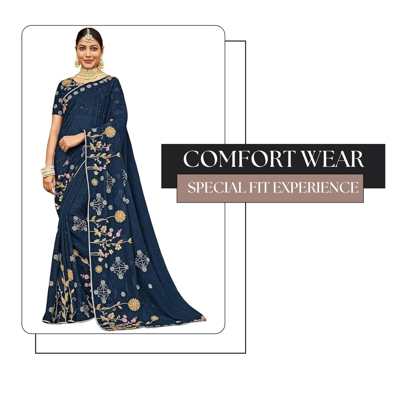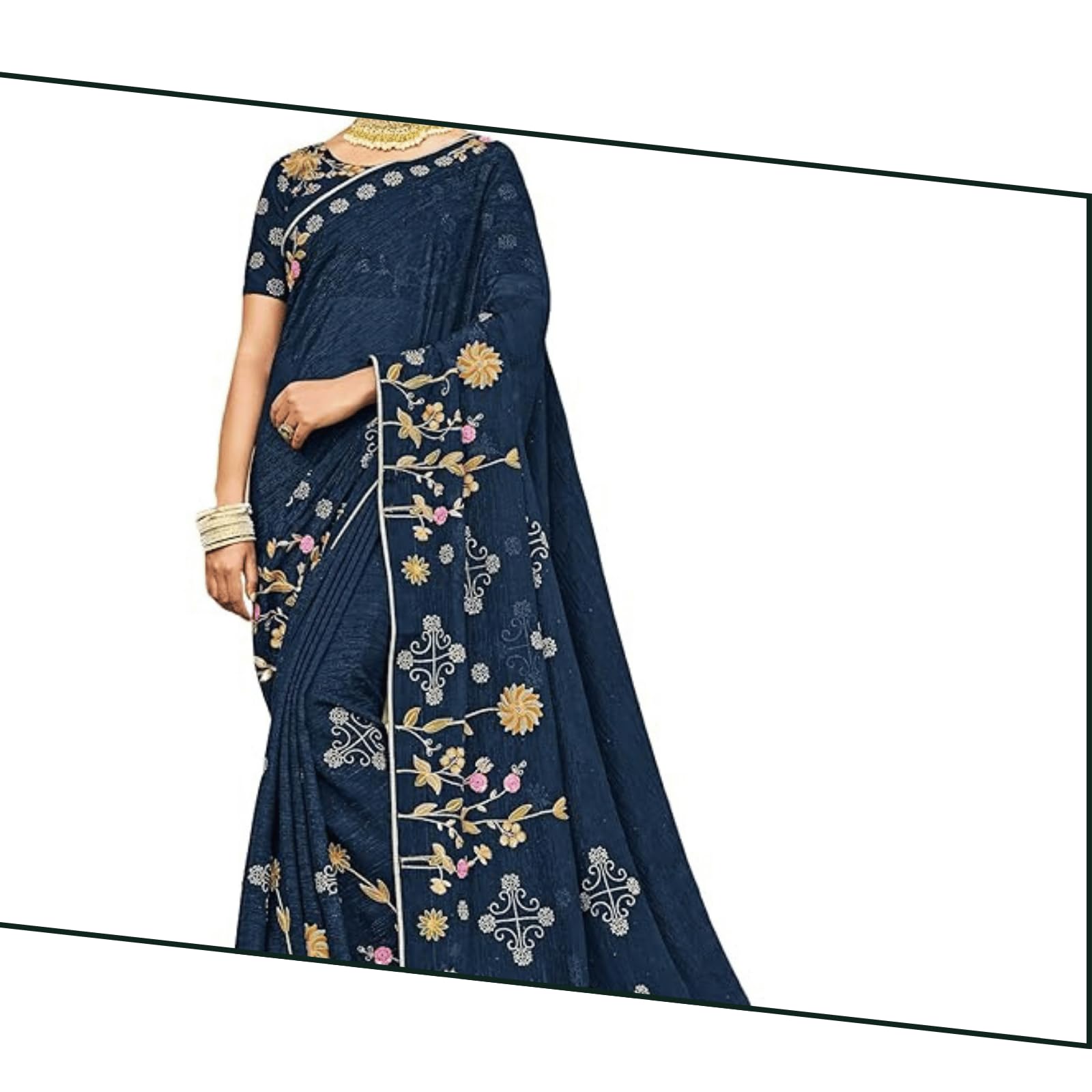 Laxmipati Sarees Women's Floral Embroidery Chiffon Saree in Blue Color with unstitched Blouse Material - Embrace Trendy Style And Timeless Elegance in this Exquisite Attire
