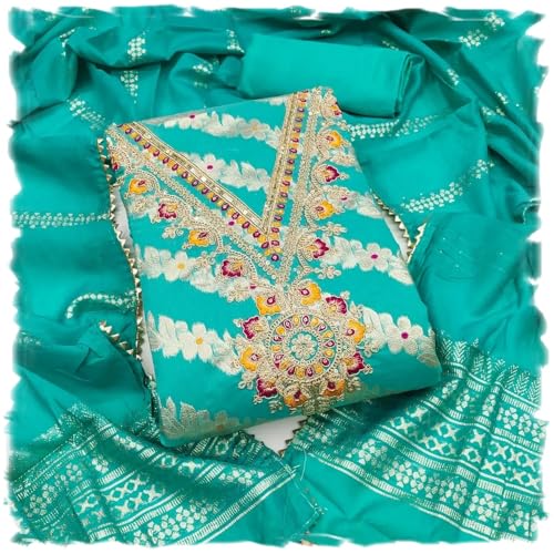 Leeli Peeri Designer Women's Banarasi Jacquard Embroidery Work Unstitched Salwar Suit Dress Material