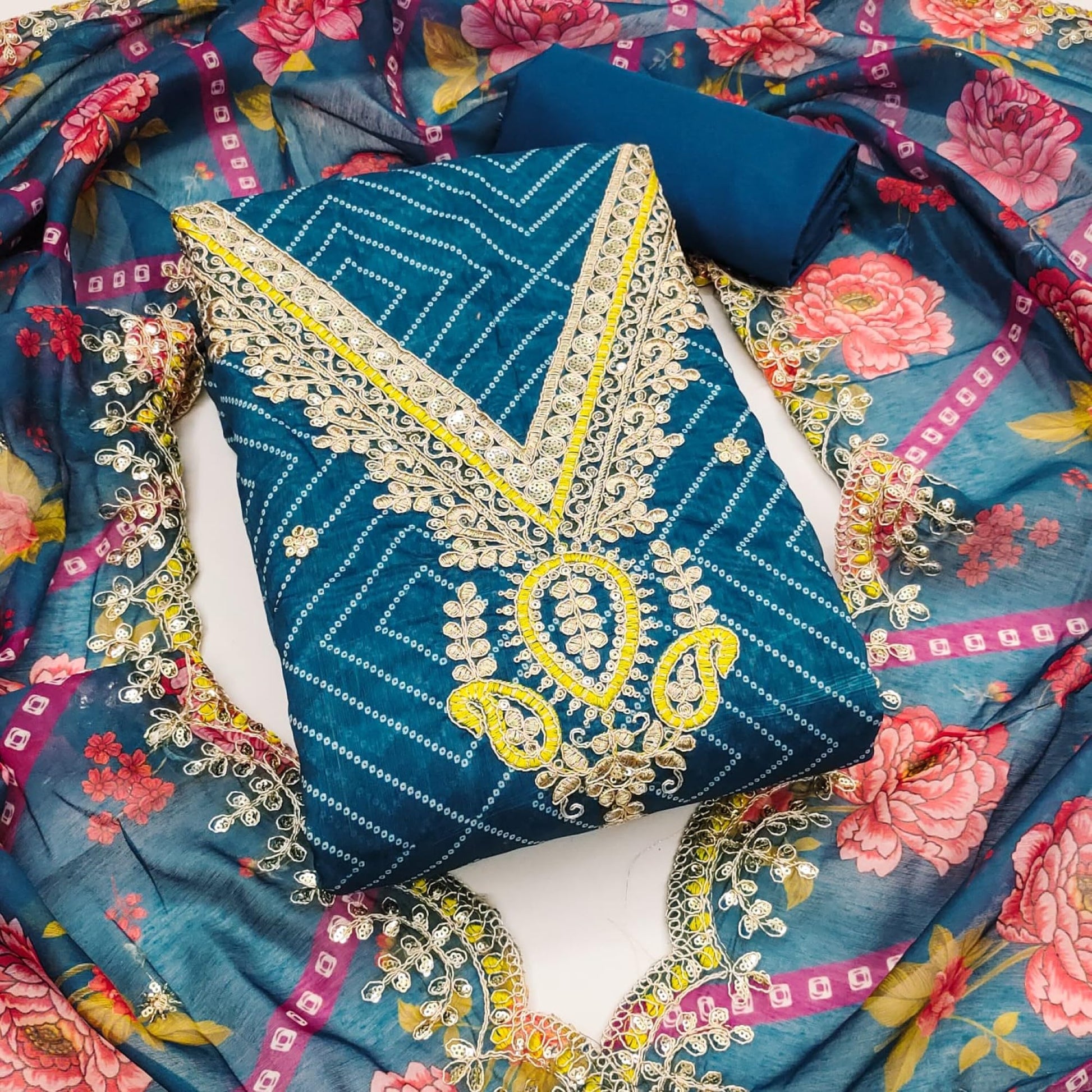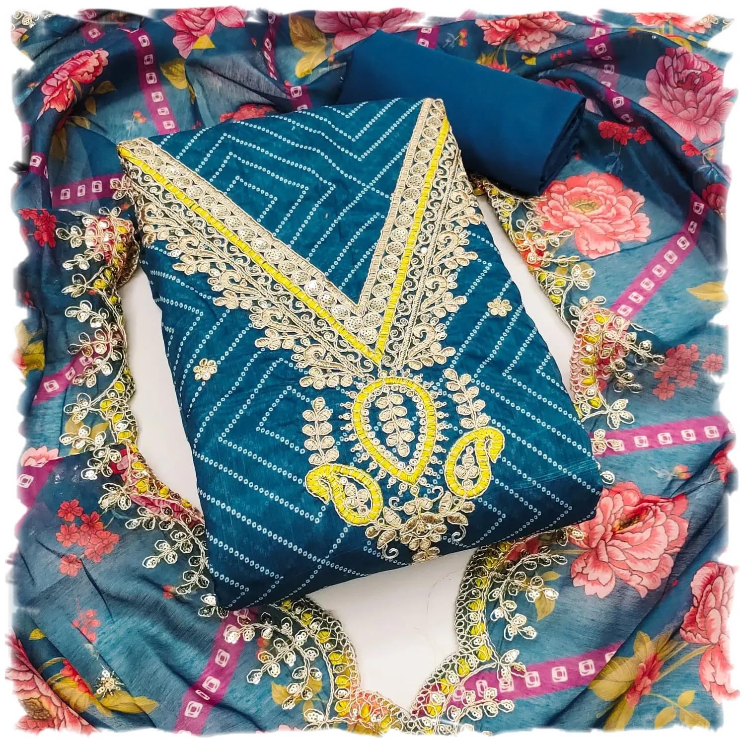 Leeli Peeri Designer Women's Chanderi Bandhani Print With Coding Work Unstitched Dress Material
