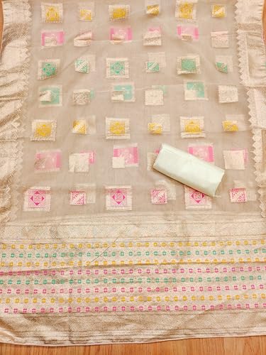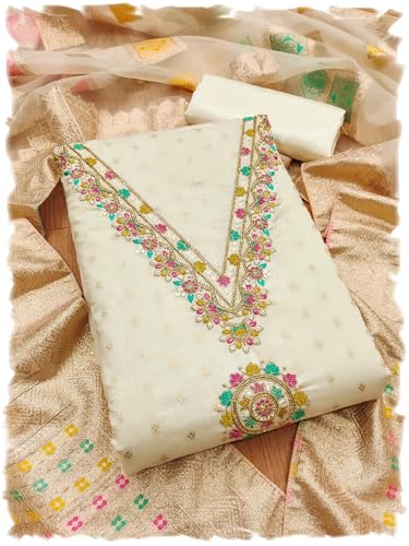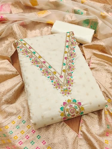 Leeli Peeri Designer Women's Chanderi Jacquard Embroidery Work Unstitched Salwar Suit Dress Material