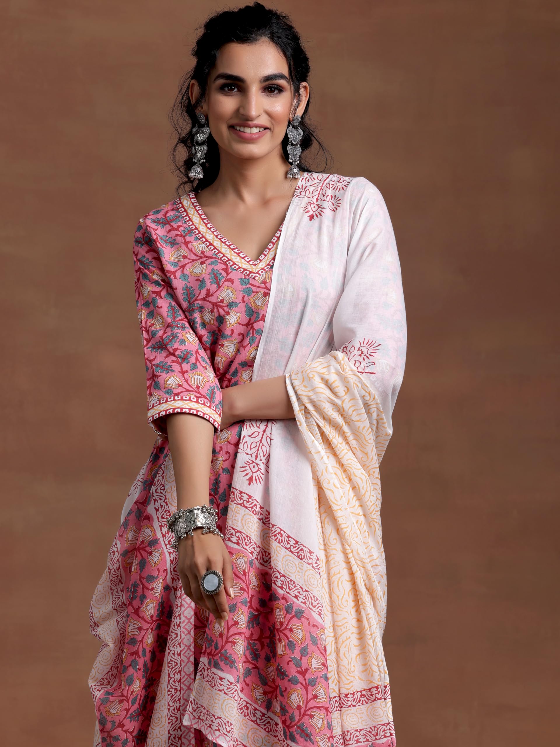 Libas Womens Printed Cotton Straight Kurta With Salwar and Dupatta