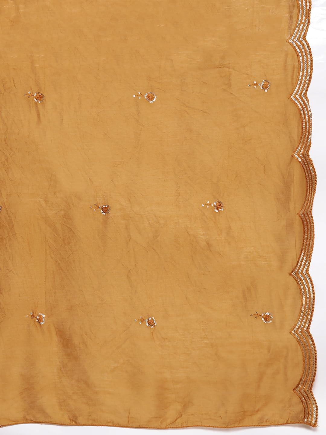 Mustard Yoke Design Silk Blend Straight Kurta With Trousers & Dupatta