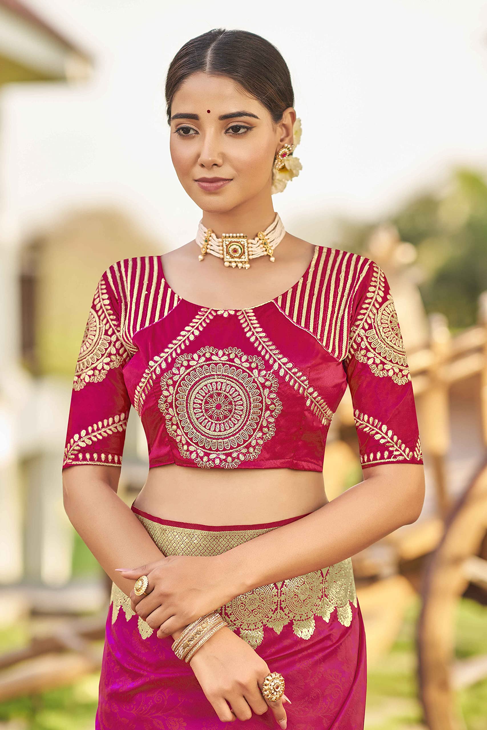 - Saree Fabric: Banarasi Silk , Blouse Fabric : Malai Silk