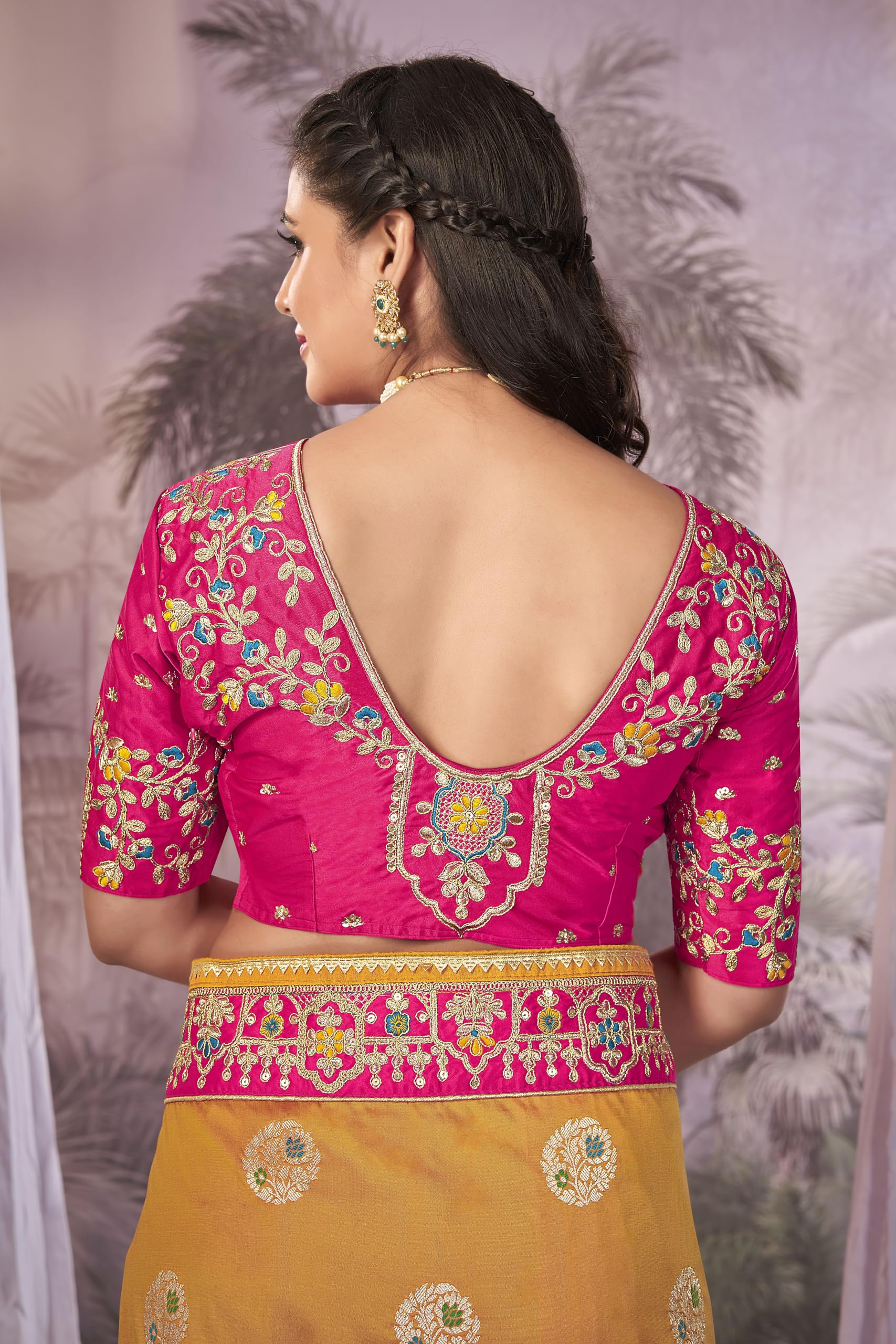 - Saree Color: Yellow & Pink, Blouse Color: Pink