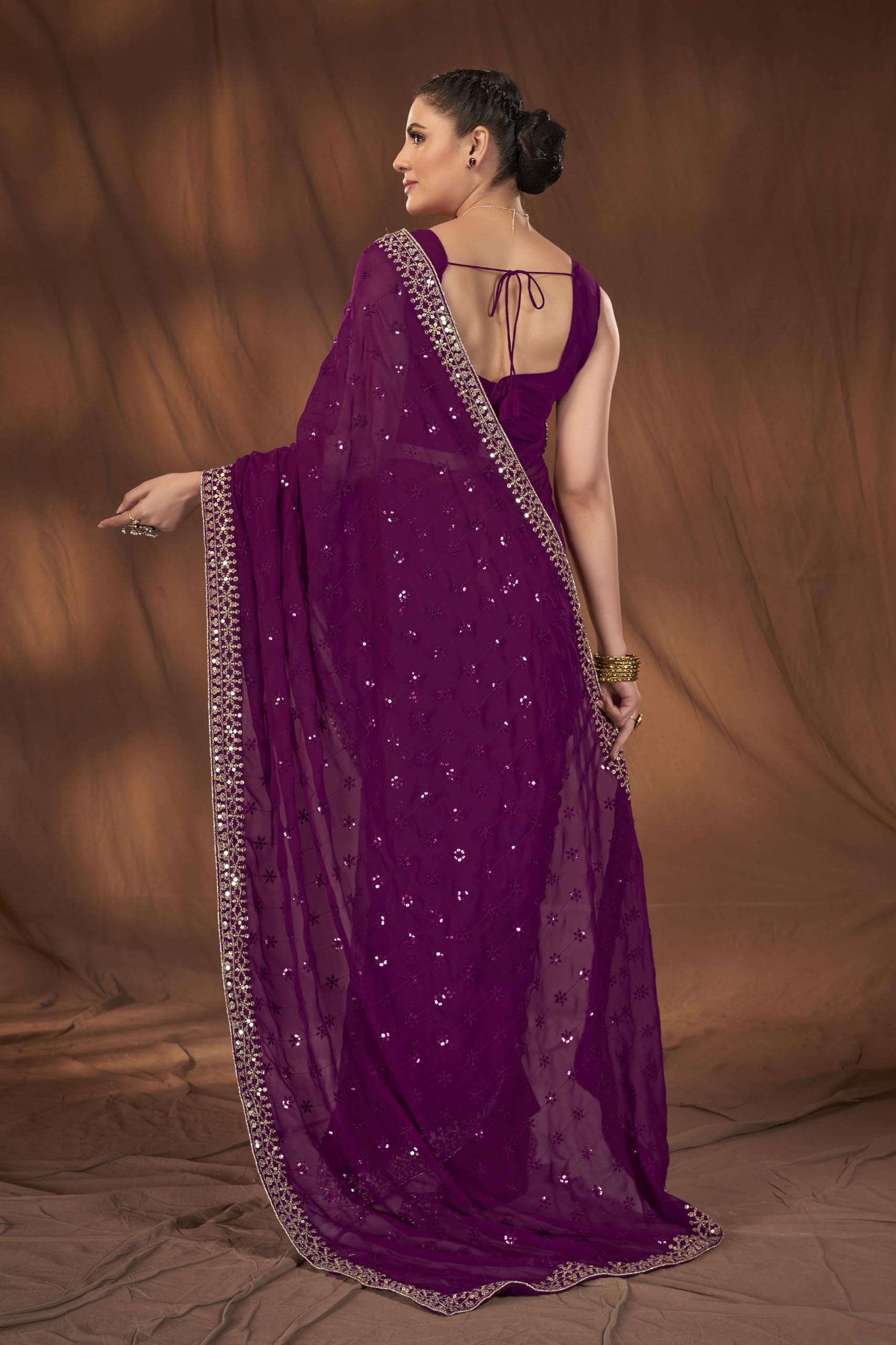 MANOHARI Most Trendy Sequance Georgette Purple Saree for women_MN1917