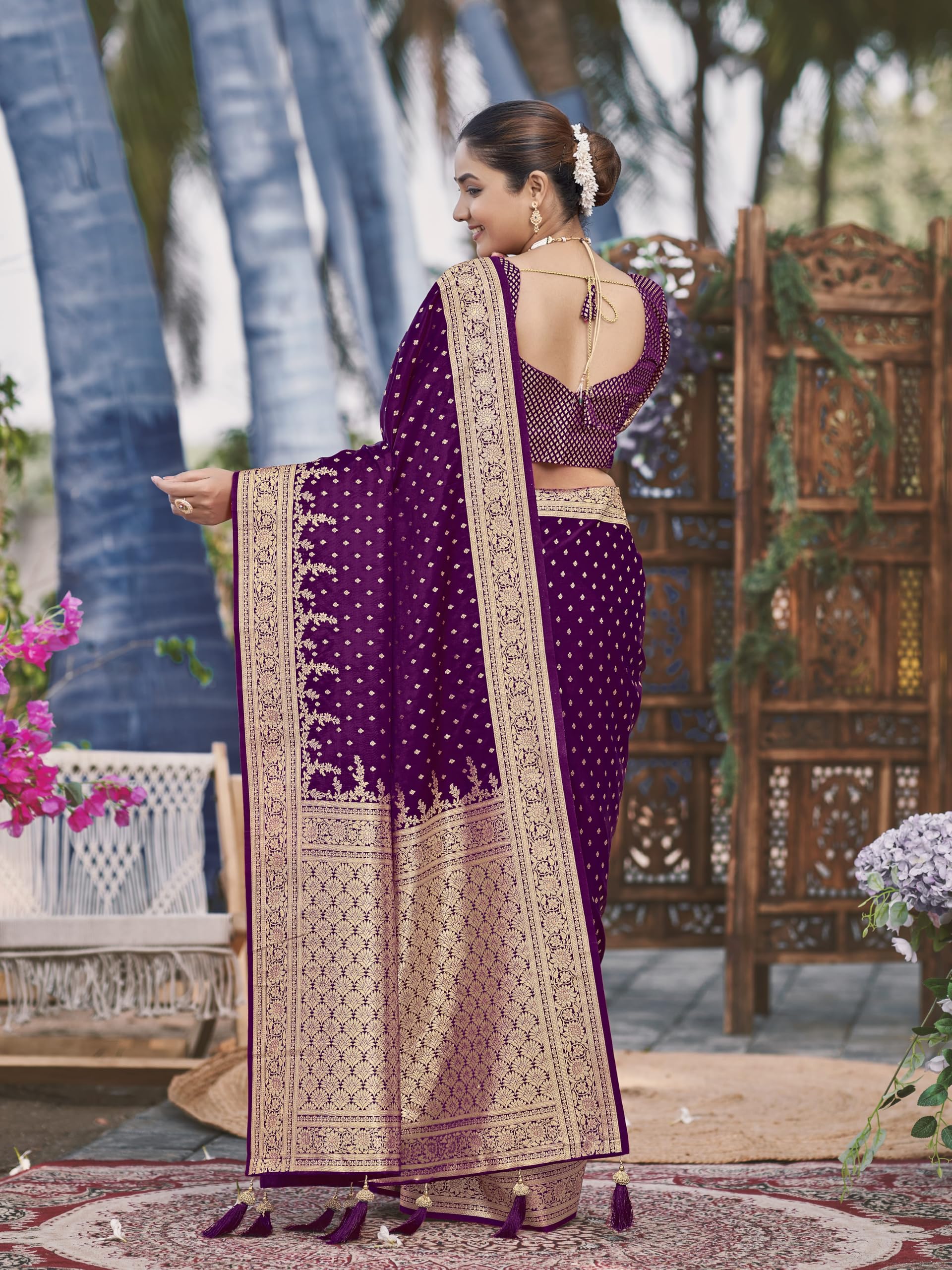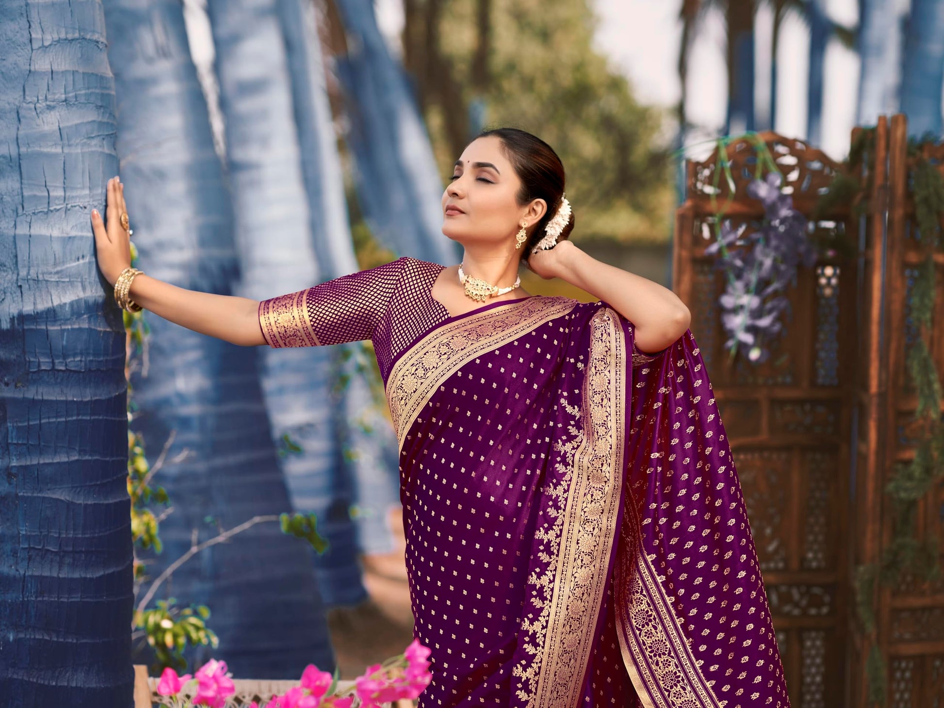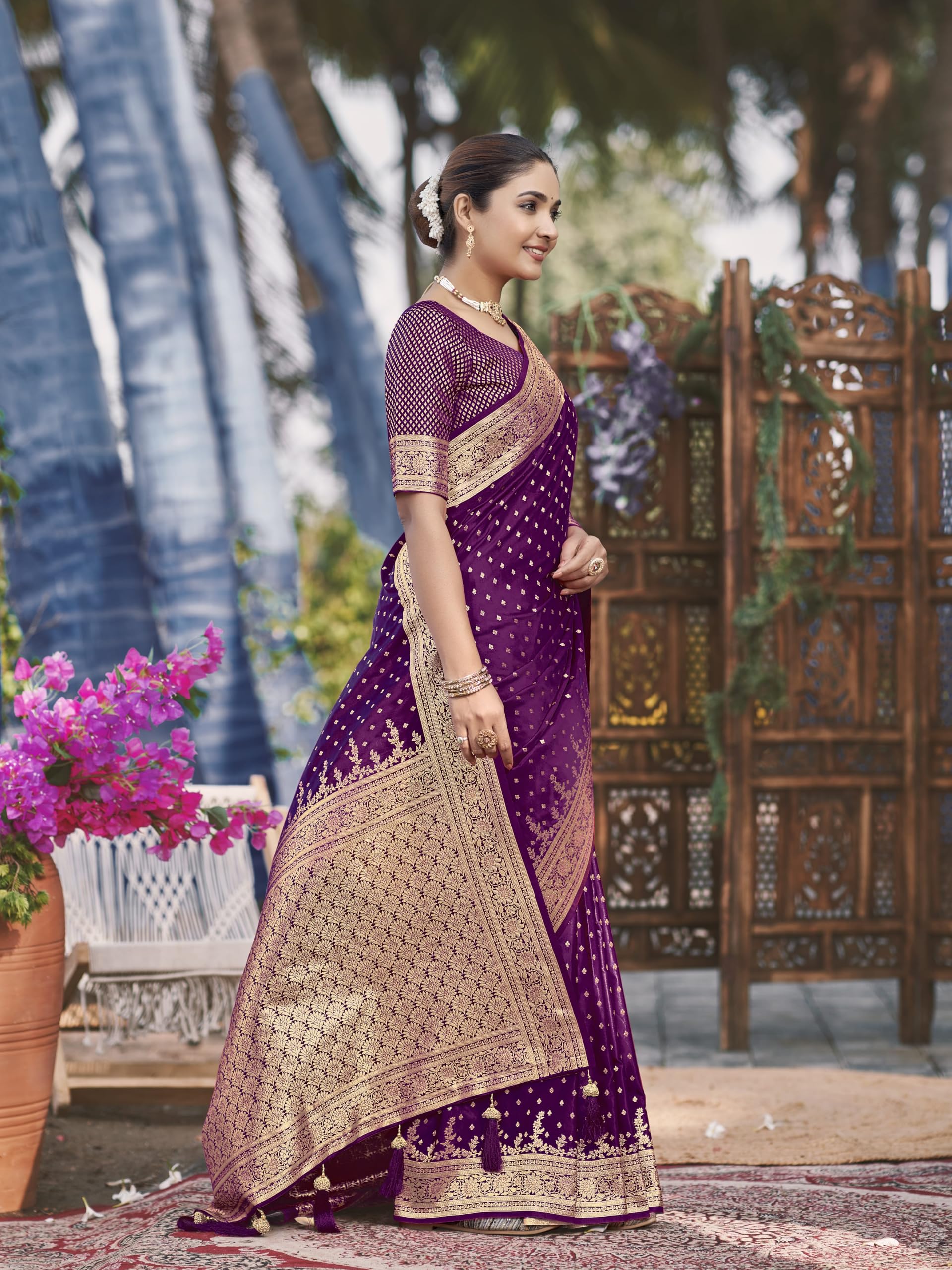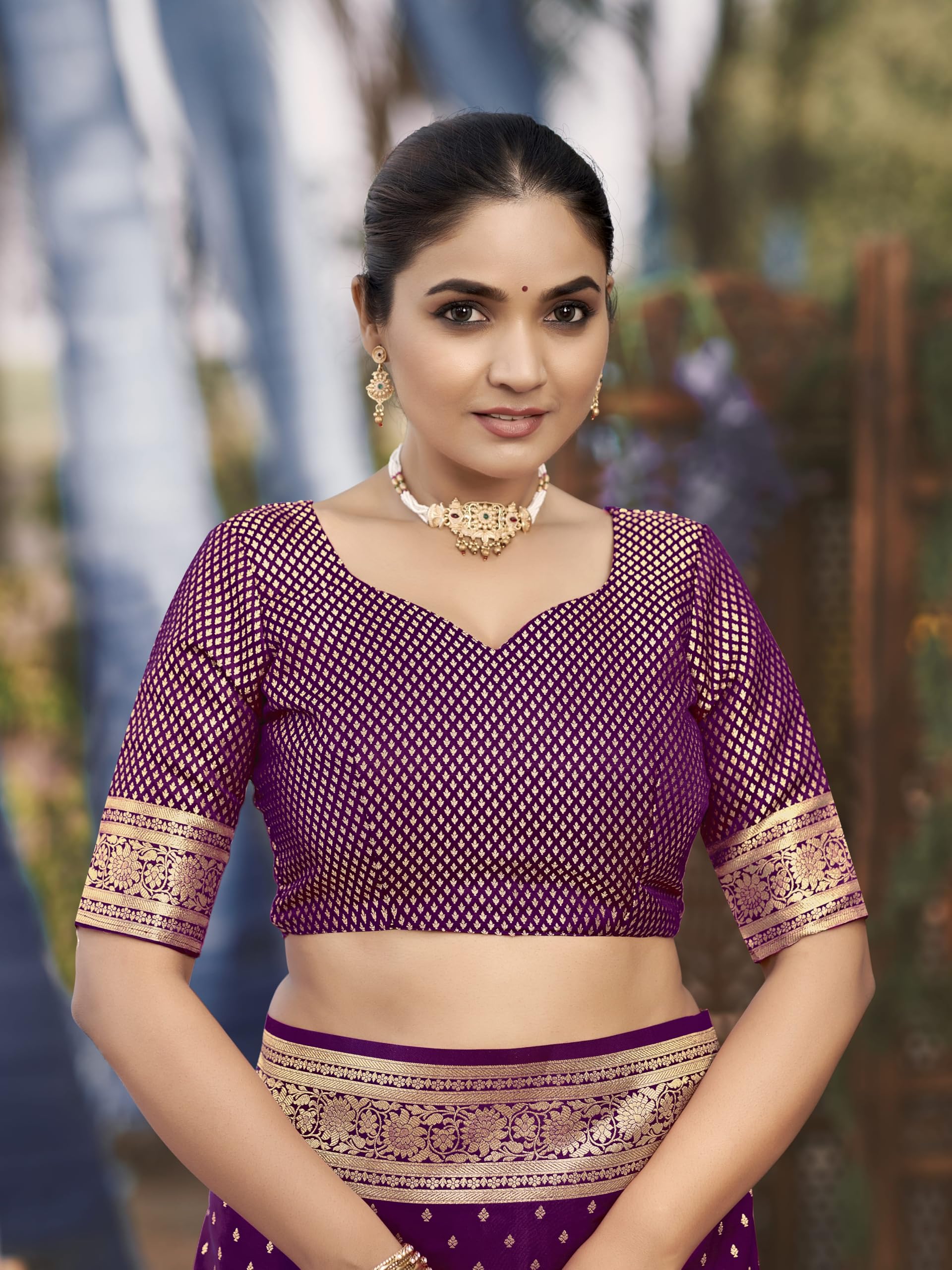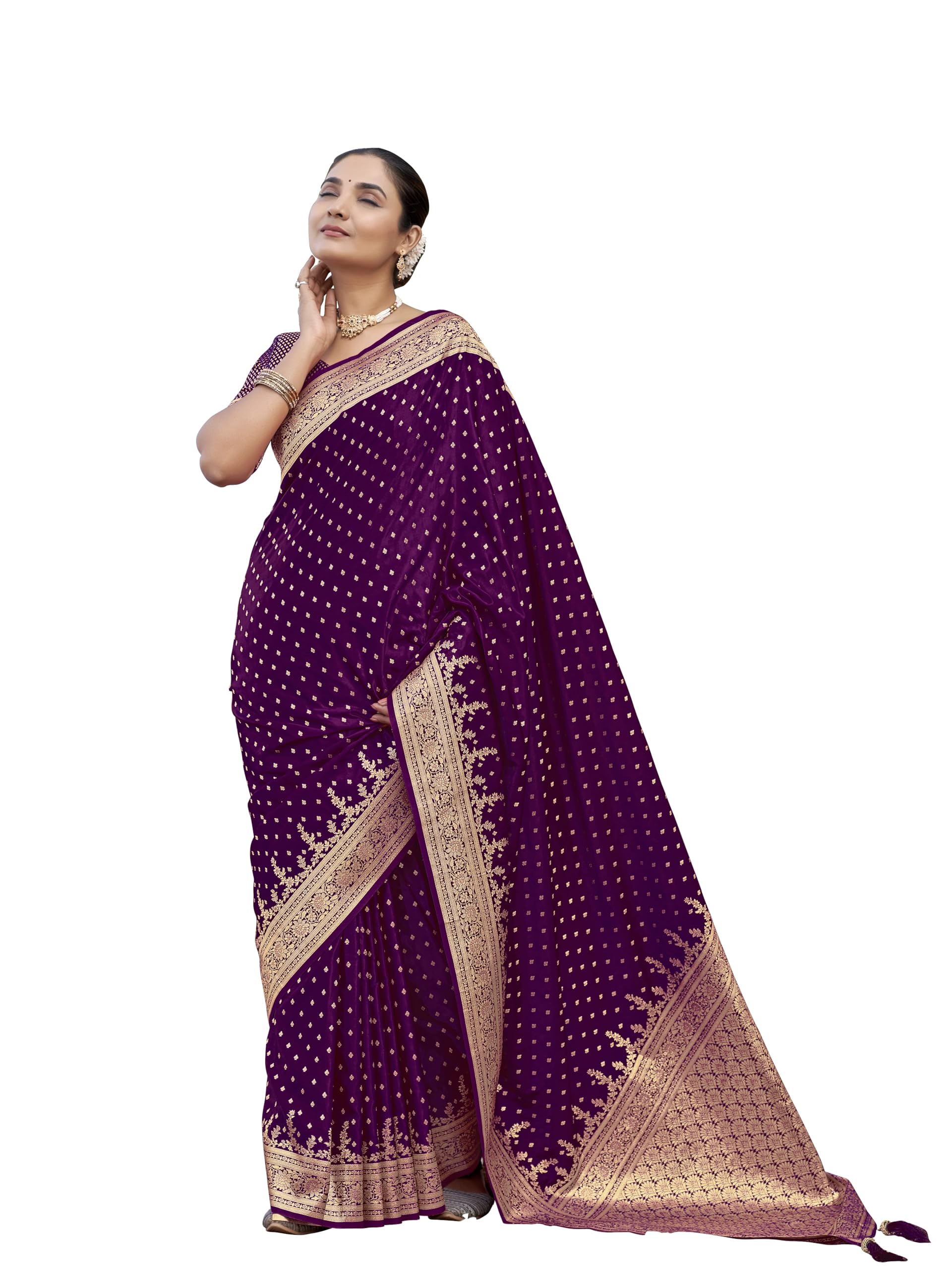 MANOHARI Women's Most Trendy Banarasi Satin Silk Woven Purple Saree With Heavy Jacquard Work Saree With Blouse Piece_MN1996