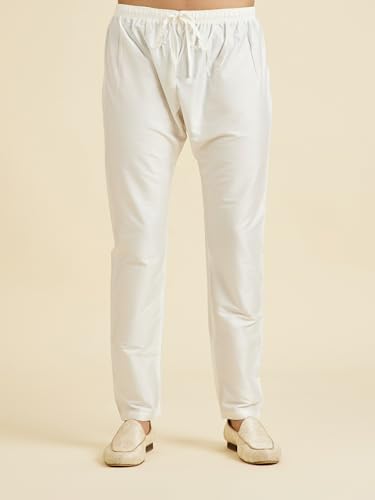 - Design: Embrace the classic elegance with this stunning white Kurta Pajama. The timeless colour subtly illuminated by the premium silk fabric offers an exquisite look. Opulent and stylish, this ensemble can dazzle any festive or celebration event.