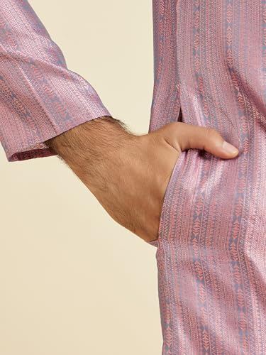 Manyavar Men's Art Silk Textured Neckline Embroidered Kurta Pyjama Set(Pink,M)