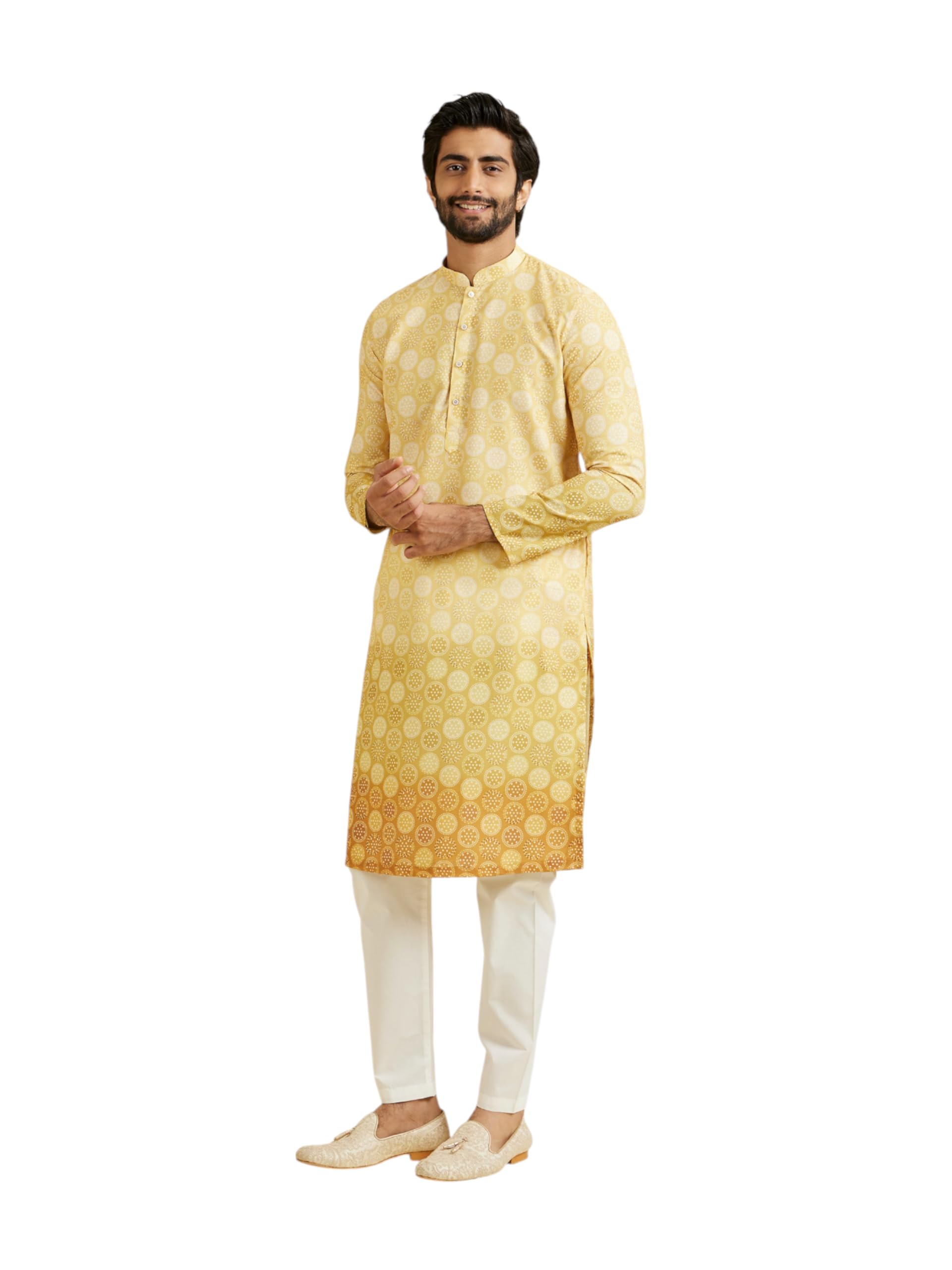 Manyavar Men's Cotton Blend Circular Bandhani Prints Kurta Pyjama Set (2pcs)