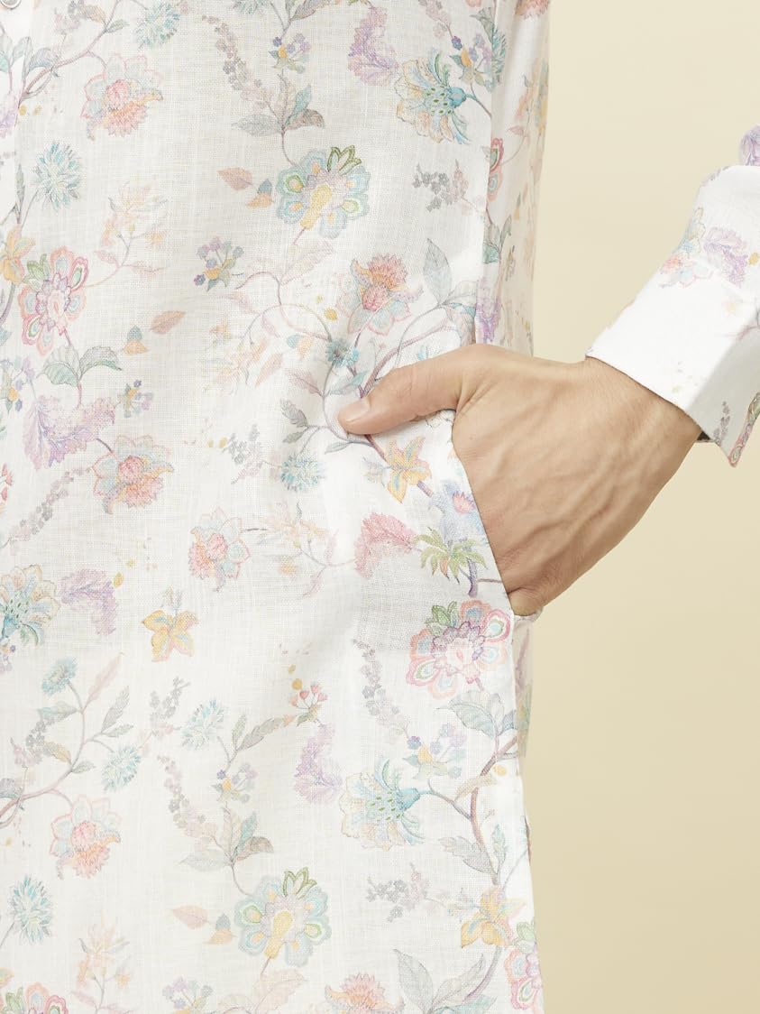 Manyavar Men's Delicate White Bel Buti Printed Kurta (L)