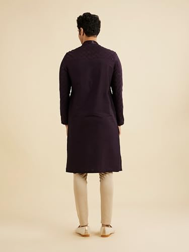 Manyavar Men's Self Patterned Sequined Bandhgala Kurta Set (Purple,XXXL)
