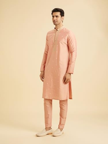 Manyavar Men's Viscose Blend Embellished Kurta Set (Peach,XL)