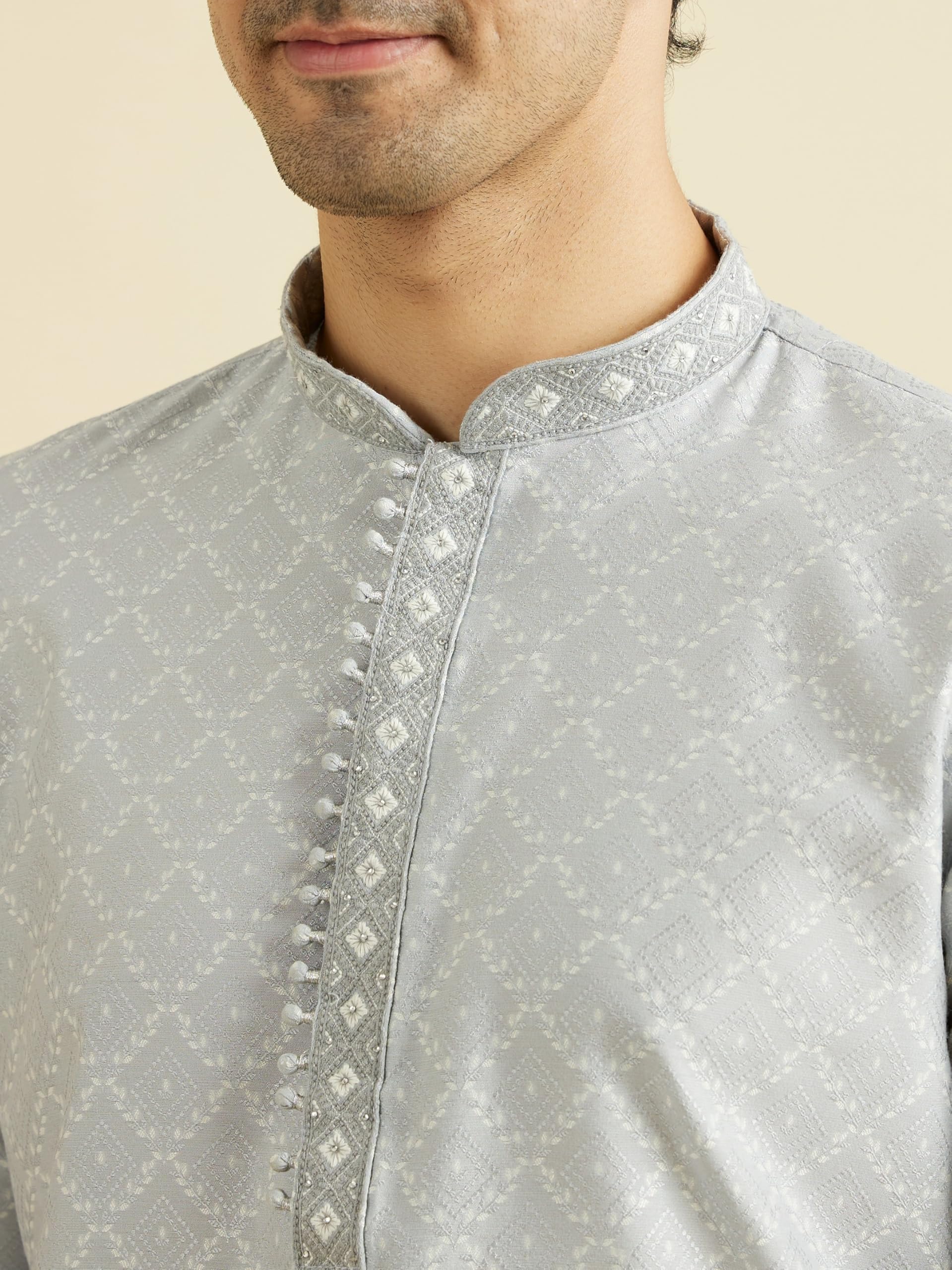 Manyavar Men's Viscose Blend Self Design Kurta Pyjama Set (2pcs)