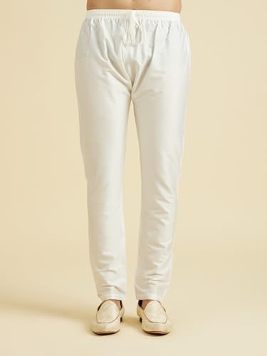 Manyavar Men's Viscose Blend Self Design Kurta Pyjama Set (Warm White,L)