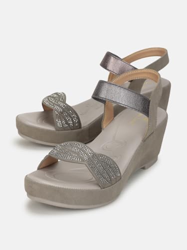 Marc Loire Women Embellished Wedge Heels| Backstrap Fashion Sandal with Comfortable Sole| Party Footwear