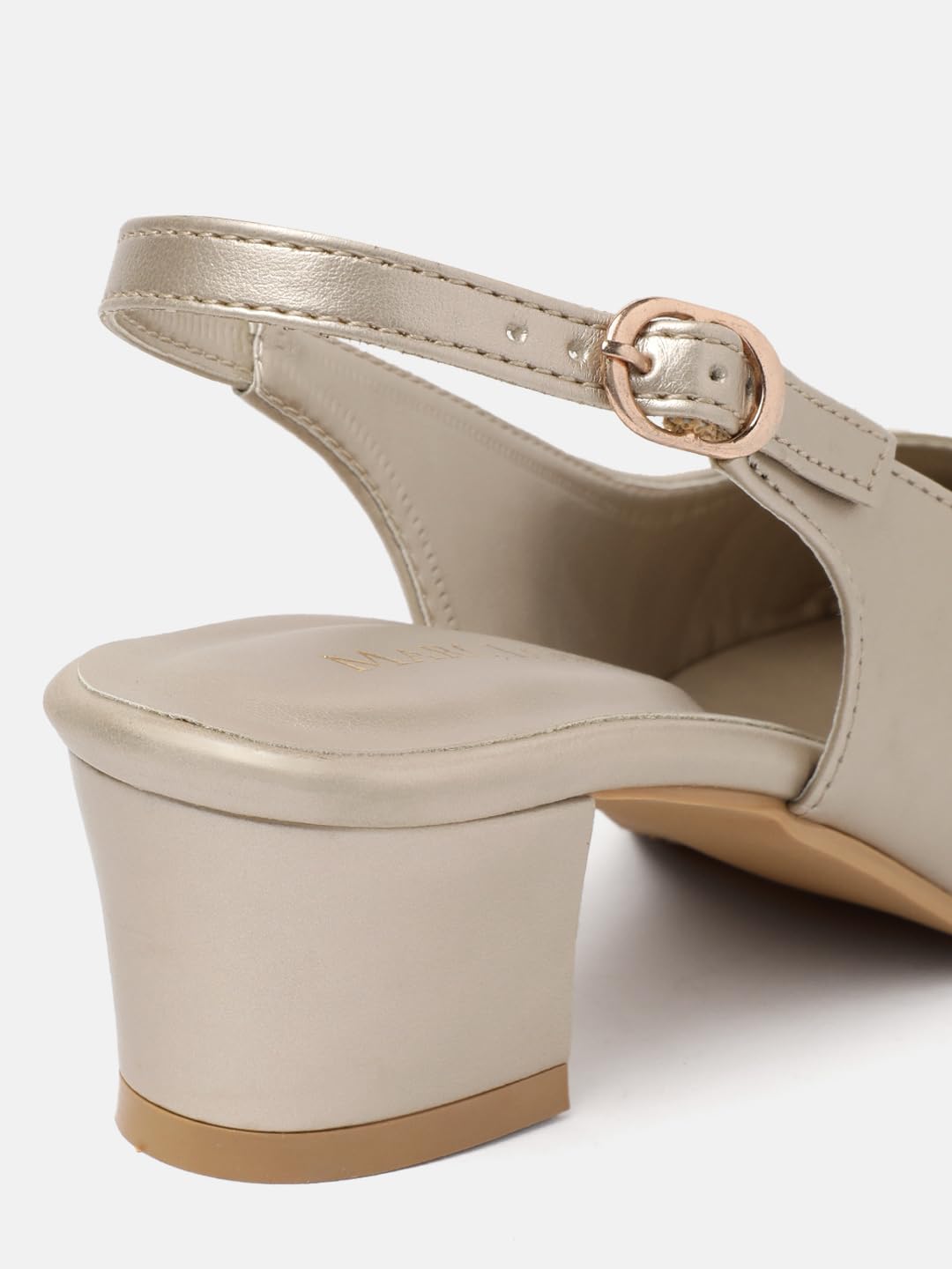 Marc Loire Women's Pointed Toe Block Heel Pumps for Office, Party and Formal Occasions (Gold, UK Footwear Size System, Adult, Women, Numeric, Medium, 5)
