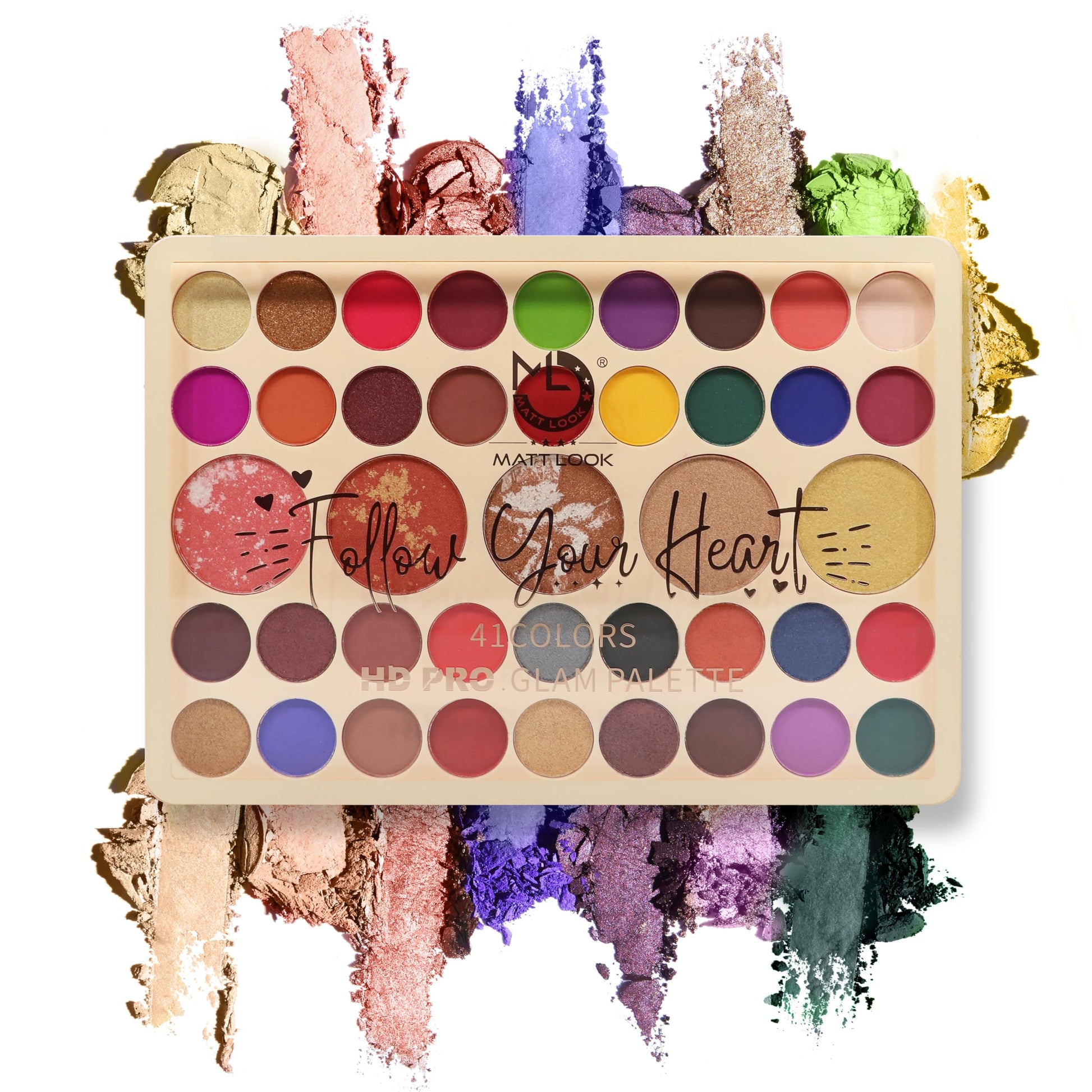 MATT LOOK 41 Colors Hd Pro Glam Palette|Multi-Purpose Use Palette|Bright Vibrant Colors|Water Proof Formula|One Stroke Application|Eye Shadows & Highlighters In One Palette- Multicolor 01(41.6G)