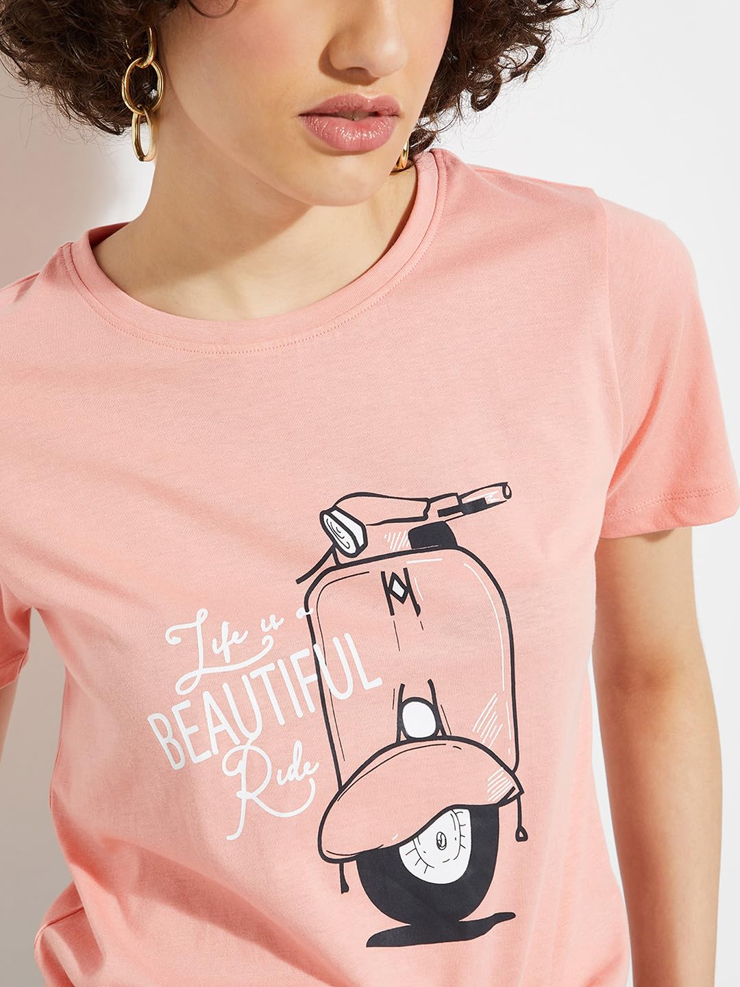Max Urb_N Women's Graphic Printed Regular Fit T-Shirt (Sp24Ycpepp13Peach)_M