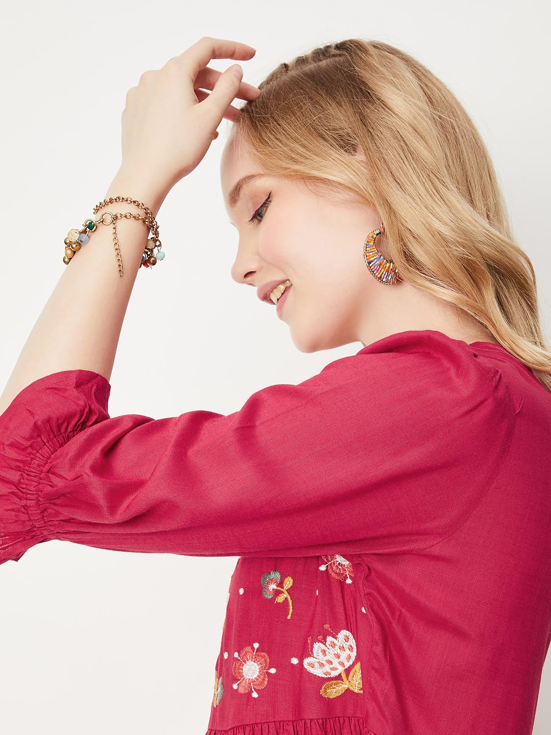 Max Women Embroidered Fit & Flare Midi Dress (EMBDRS33008RED)_M