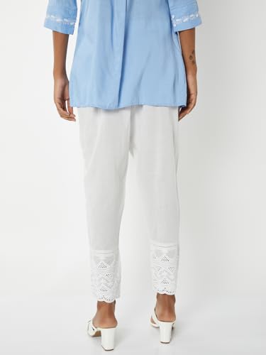 Max Women Embroidered Hem Straight Pants (White_XL)