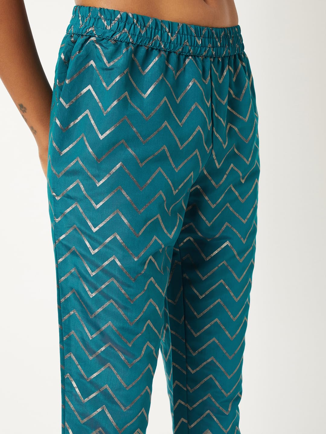 Max Women Embroidered Straight Kurta Set (Blue_L)
