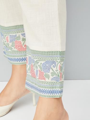 Max Women Floral Print Straight Kurta Set (Off White_M)