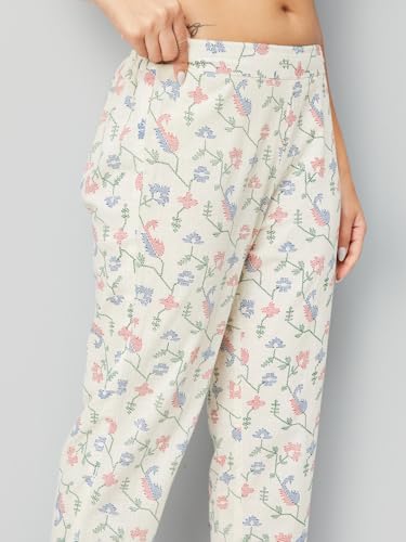 Max Women Floral Print Straight Kurta Set (Off White_XL)
