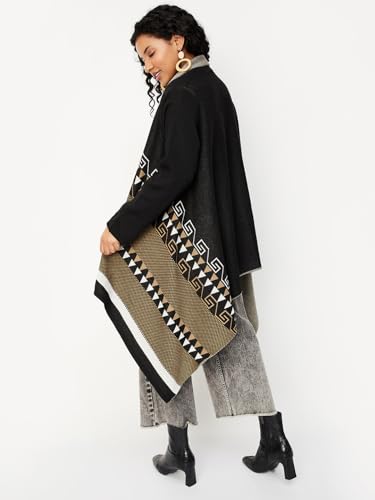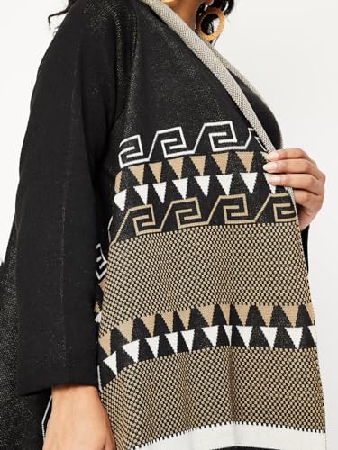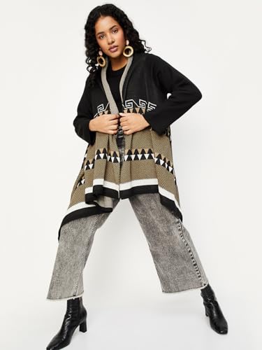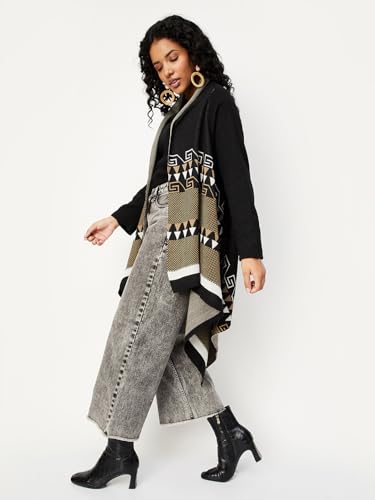 Max Women Geometric Printed Waterfall Shrug (SRG34012BLACK)_L
