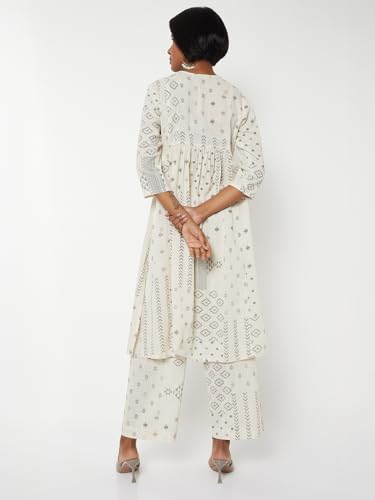 Max Women Printed Straight Kurta Set (White_M)