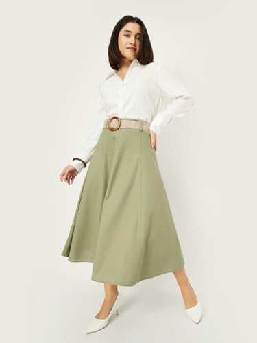 Max Women Solid A-line Belted Skirt (Green_XL)