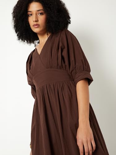 Max Women Textured A-line Midi Dress (Brown_XS)