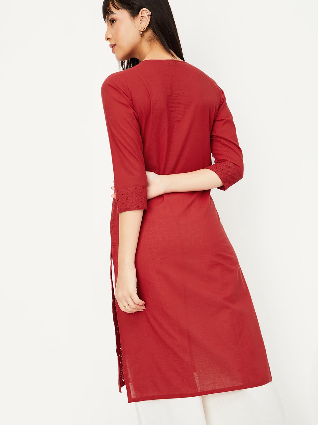 Max Women's Cambric Regular Kurta (BEWWSS24AL_Maroon_M, Regular Fit