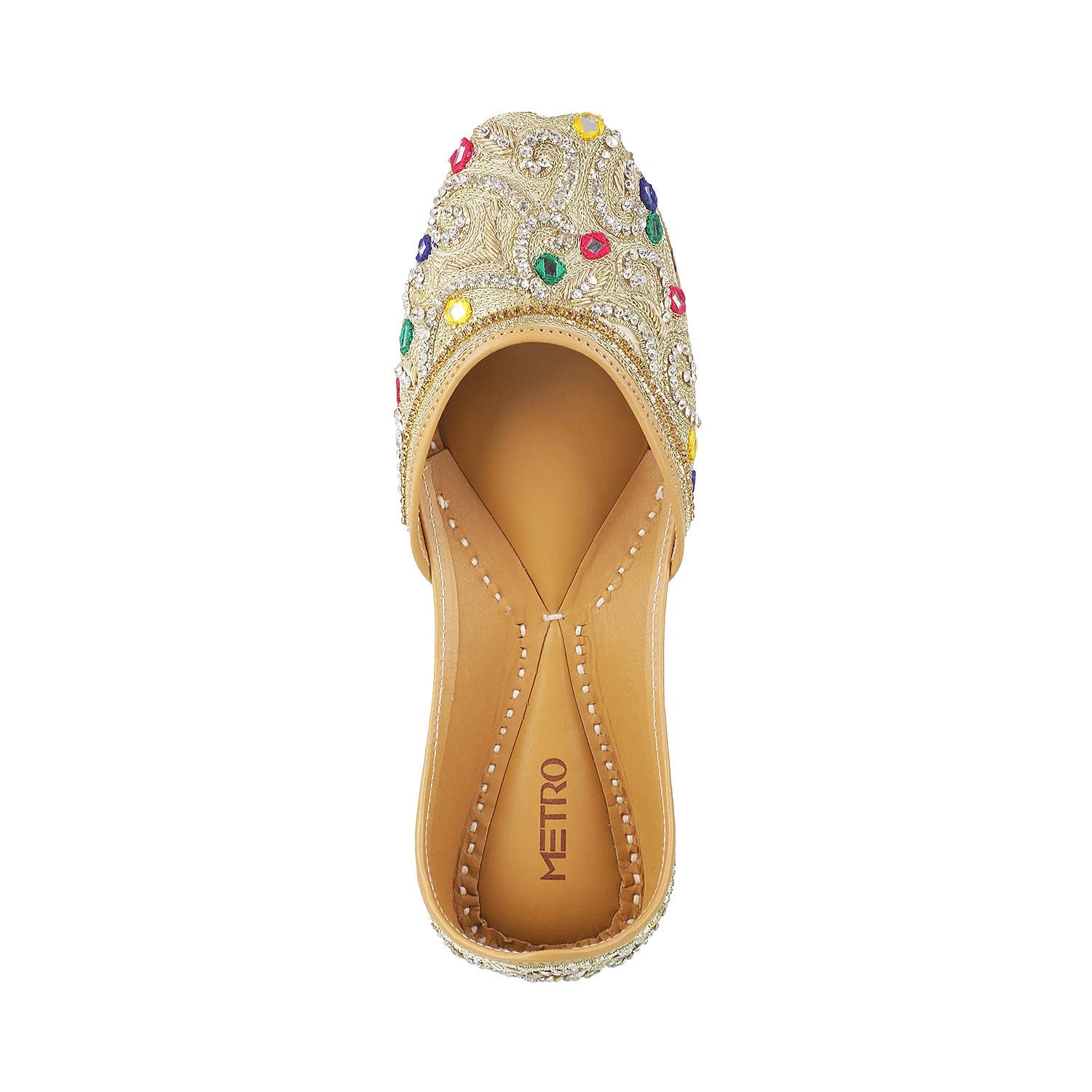 Metro Womens Beaded Beige Mojaris (Size (4 UK (37 EU))