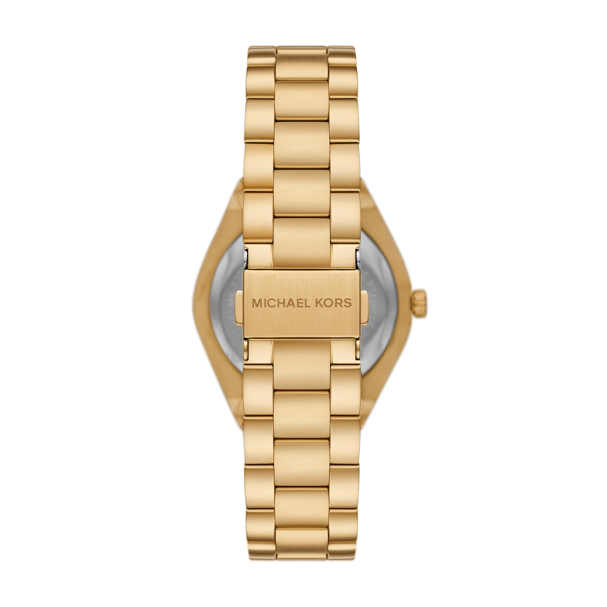 Michael Kors' 37mm Lennox watch features a white sunray dial, three-hand movement and gold-tone stainless steel bracelet.
