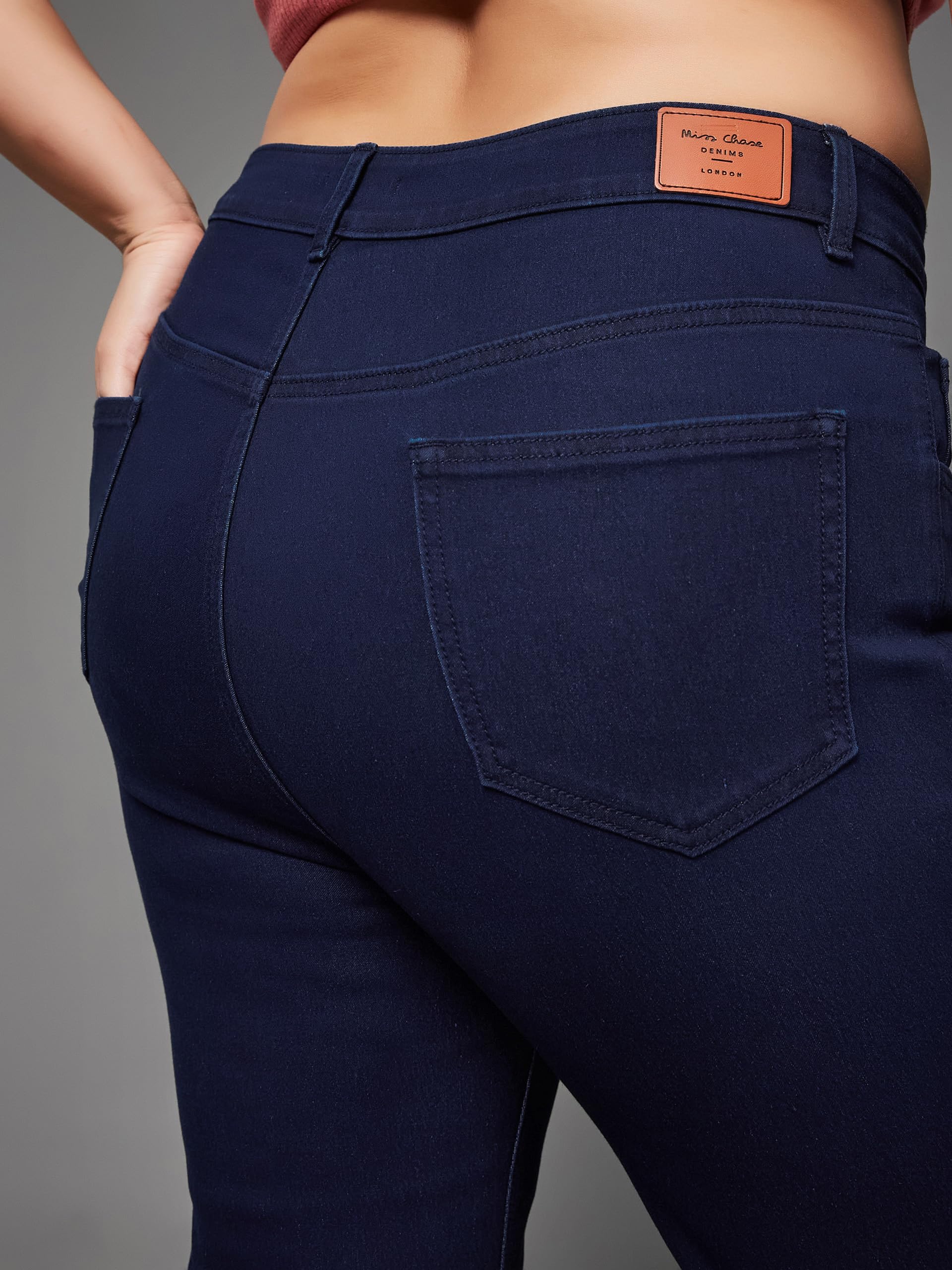 Miss Chase A+ Women's Bootcut High Rise Regular Length Stretchable Denim Jeans (APAW24DEN79-36-71-44, Navy Blue, 44)
