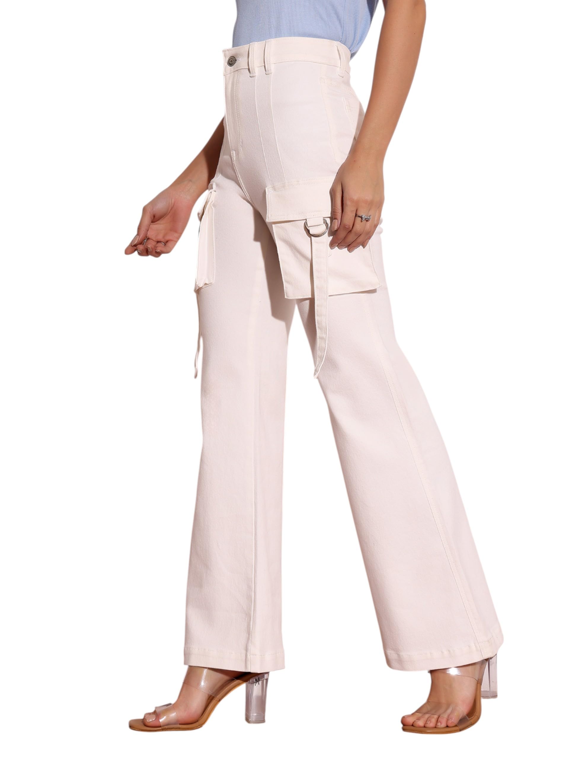 - Style: Flared | Closure: Button and Zip Fly | Length: Regular | Pockets: 2 Front Cargo Pockets, 2 Back Pockets | Fit: Bootcut | Stretch: Yes | Rise: High rise