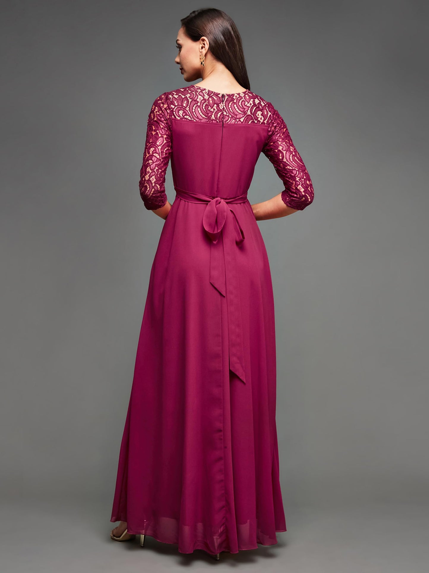 • Style: Wrap | Pattern: Lace Ovelaid | Fit: Relaxed Fit | Neck: V-Neck | Sleeves: Lace Overlaid | Closure: Zip | Length: Maxi | Pockets: Yes, 2 Side Pockets