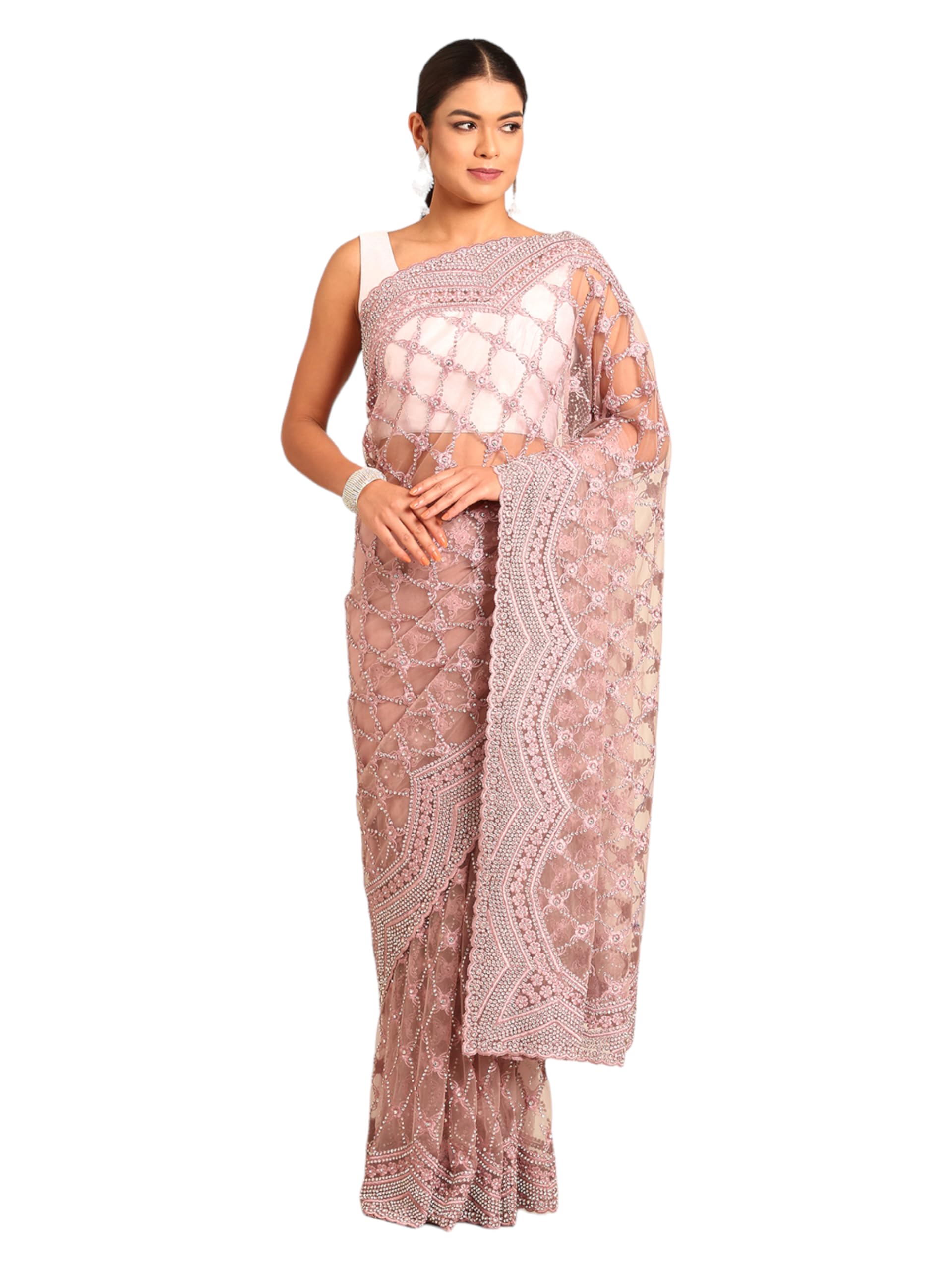 Mohey Purple Net Embroidery|Stone Work Saree for Women