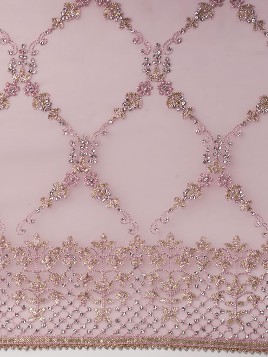 MOHEY Women's Organza Machine Resham Boota & Border Work Saree with Unstitched Blouse Piece - Purple