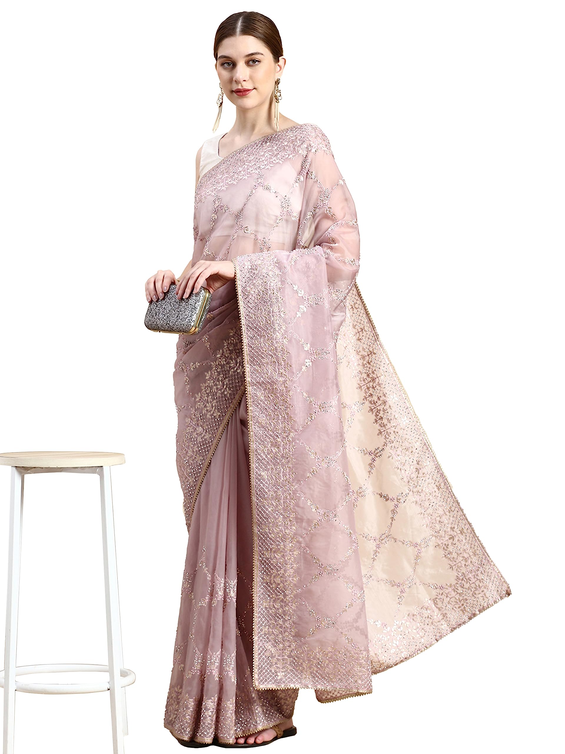 - Design: Adorned with floral and diamond patterns and sequin work, this mulberry saree is the perfect blend of subtlety and glamour. Pair this saree with silver-tone jewellery for an ensemble that expresses elegance and sophistication.
