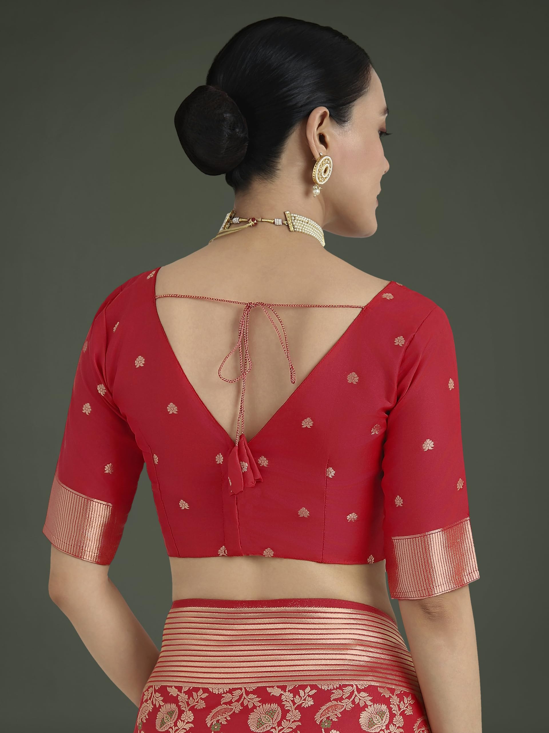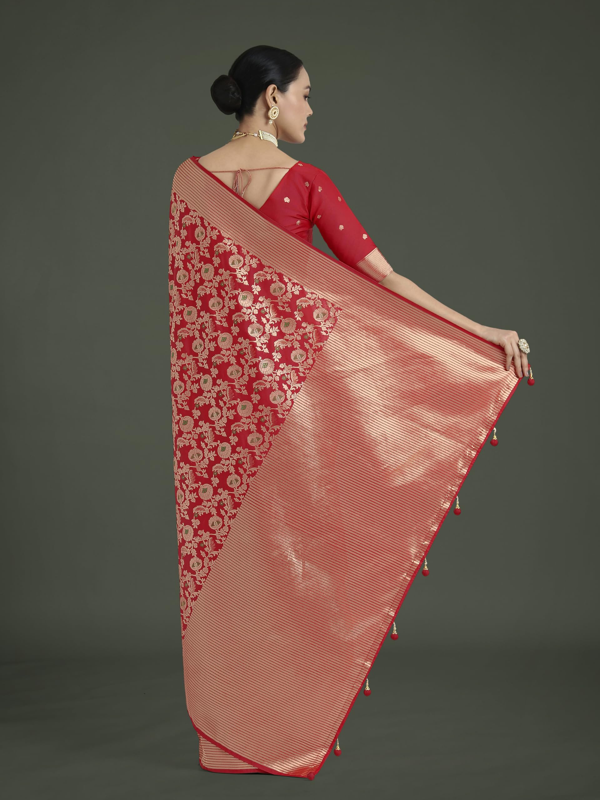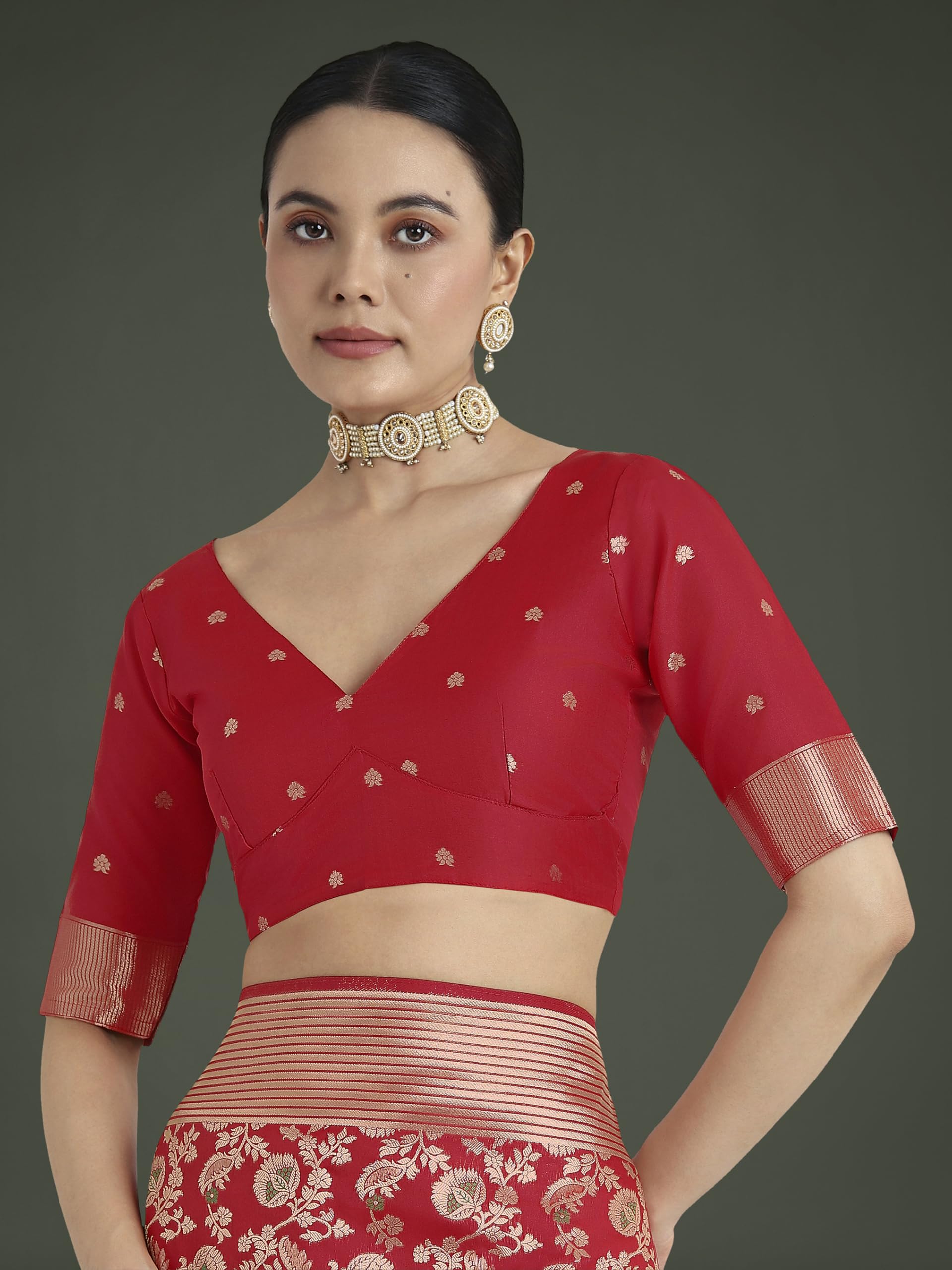 Monjolika Fashion Women's Graceful Banarasi Silk Saree In Classic Zaal Pattern & Rich Zari Woven Pallu comes with Unstitched blouse (14000_Color)