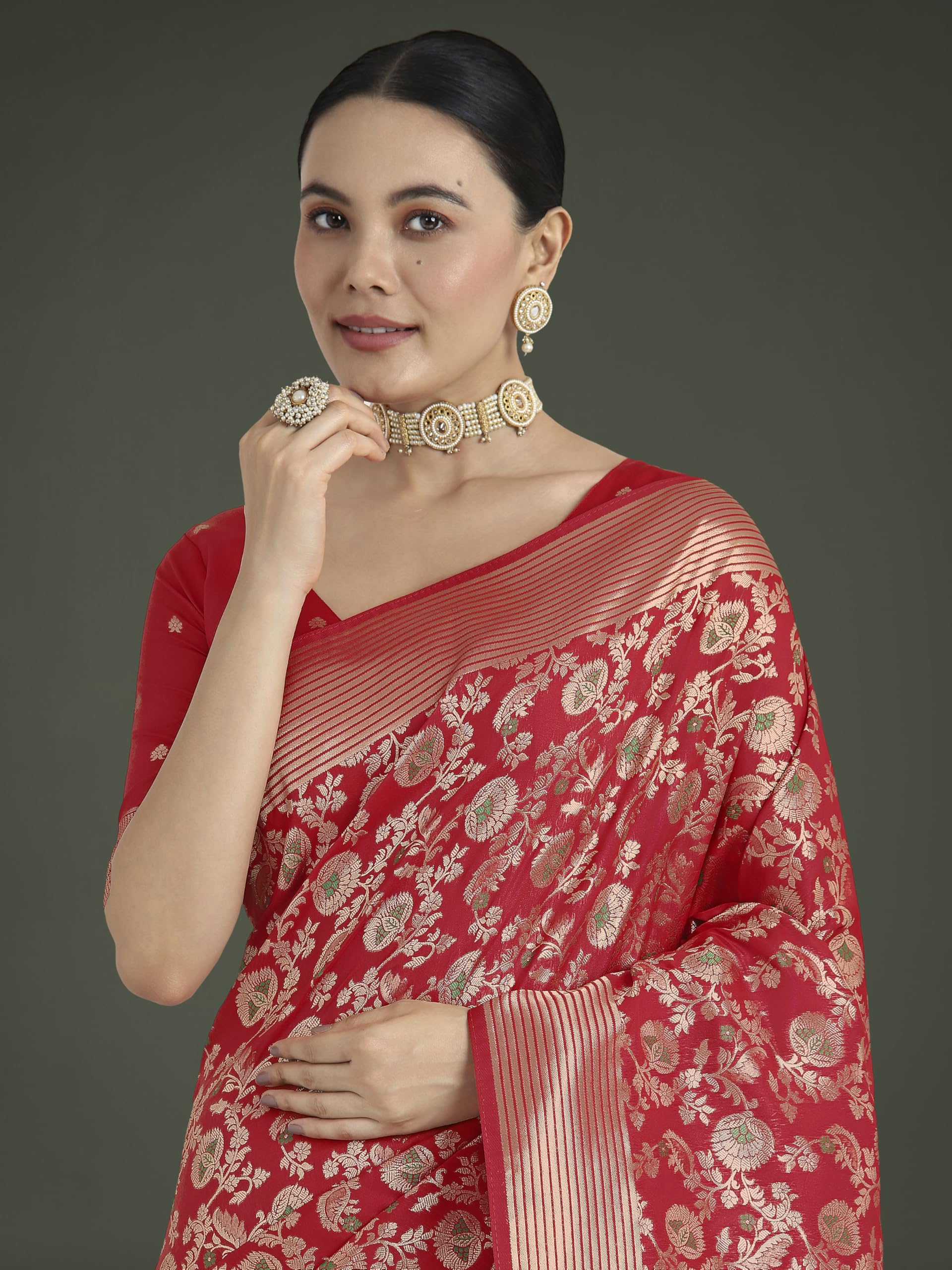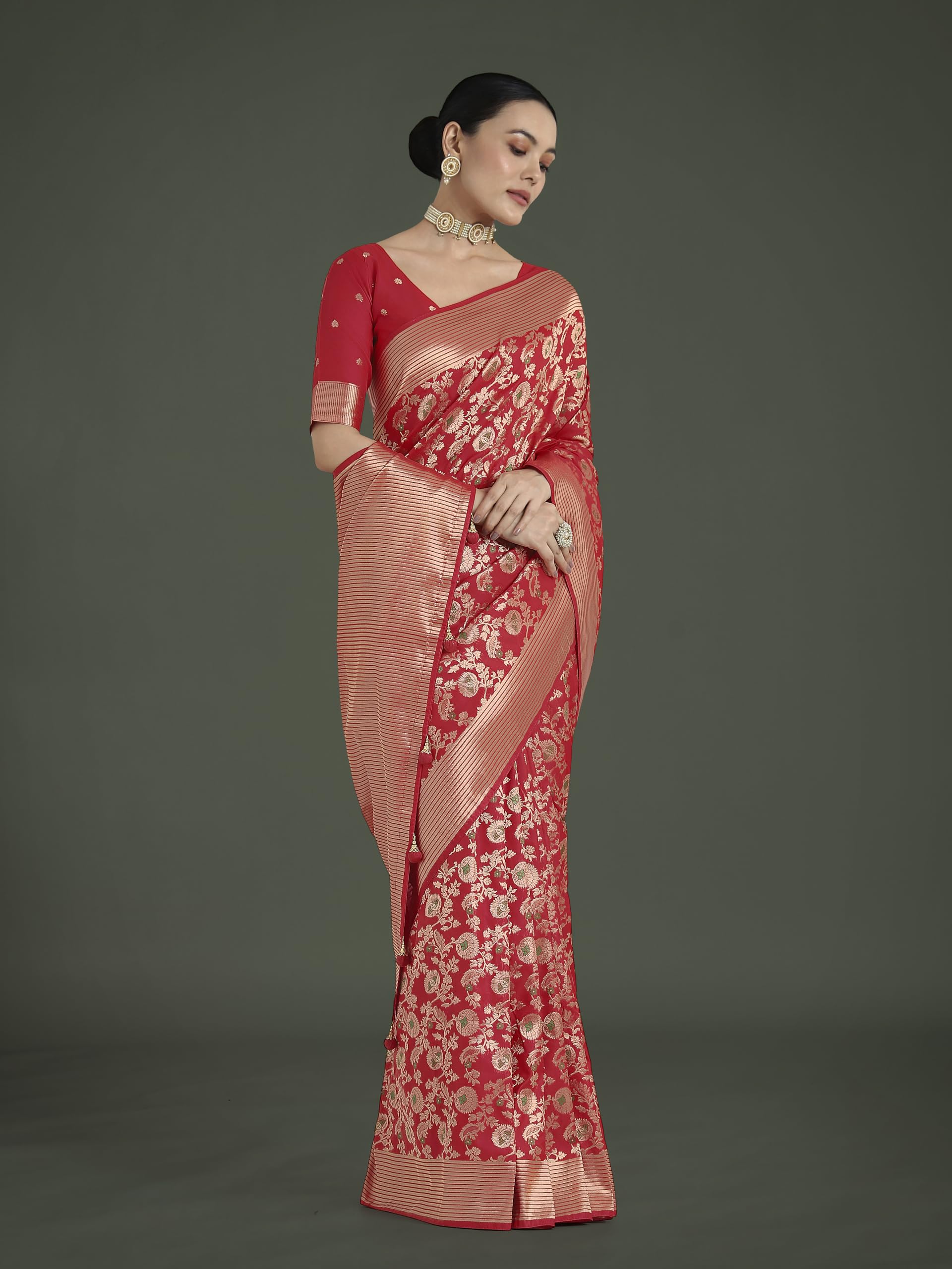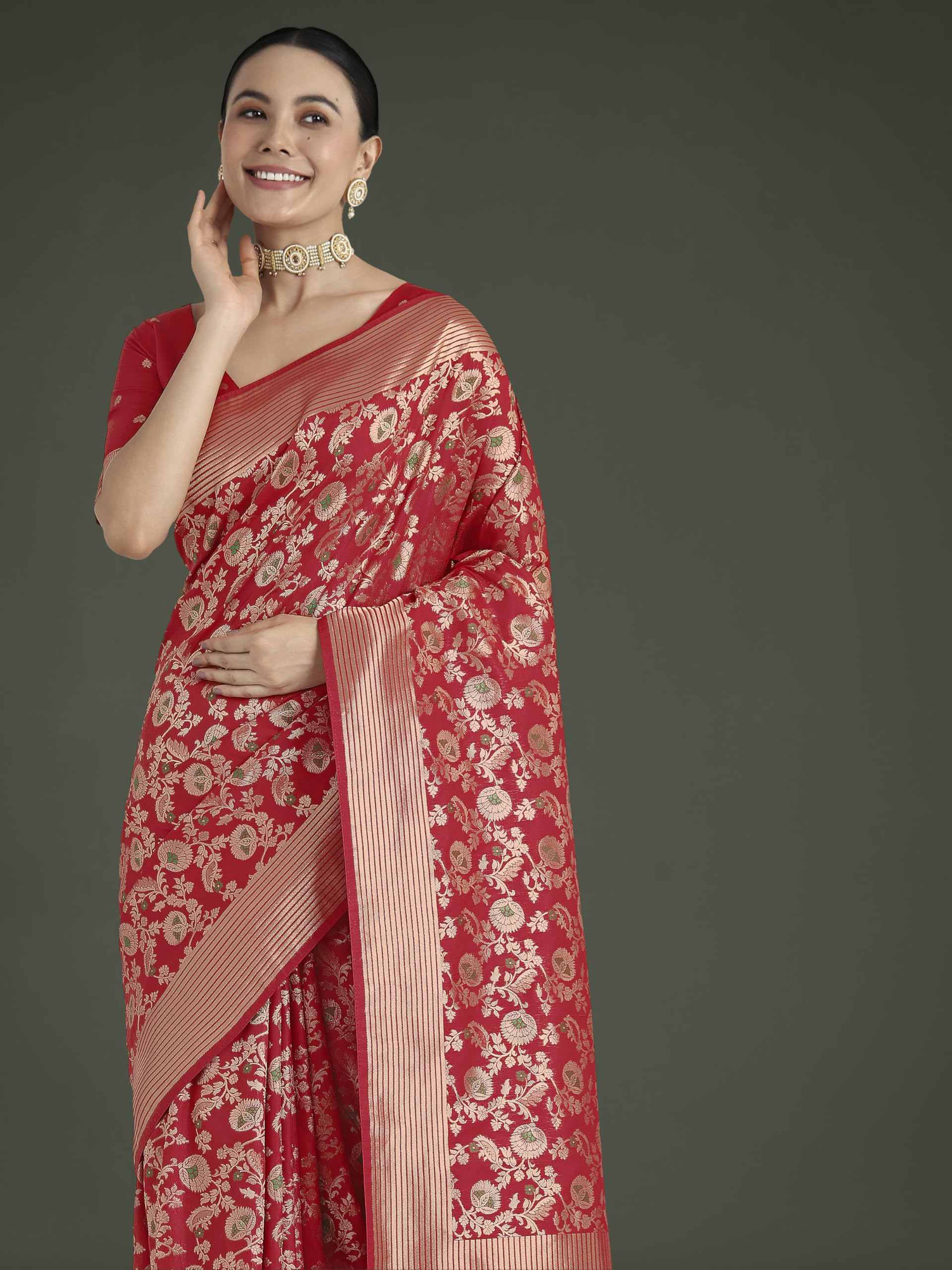 Monjolika Fashion Women's Graceful Banarasi Silk Saree In Classic Zaal Pattern & Rich Zari Woven Pallu comes with Unstitched blouse (14000_Color)
