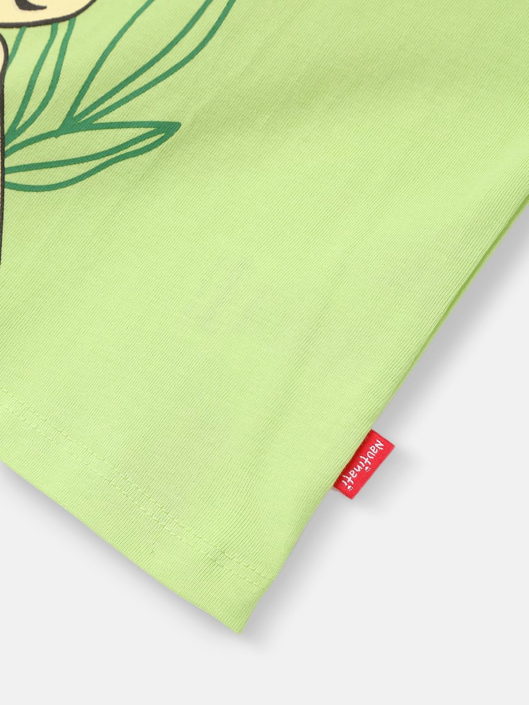 Dress your little princess in the Nautinati girls’ Disney princess cotton T-shirt for a magical look. Made from soft 180 GSM single jersey cotton, it’s gentle on delicate skin. The charming Disney Princess placement print adds a fairy-tale touch to casual outfits. Designed with a round neck and gathered sleeves, it ensures comfort with a stylish flair. The keyhole button closure at the back allows easy dressing. Perfect for casual outings, this T-shirt keeps your baby cosy all day.
