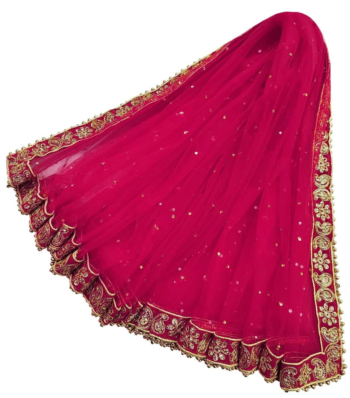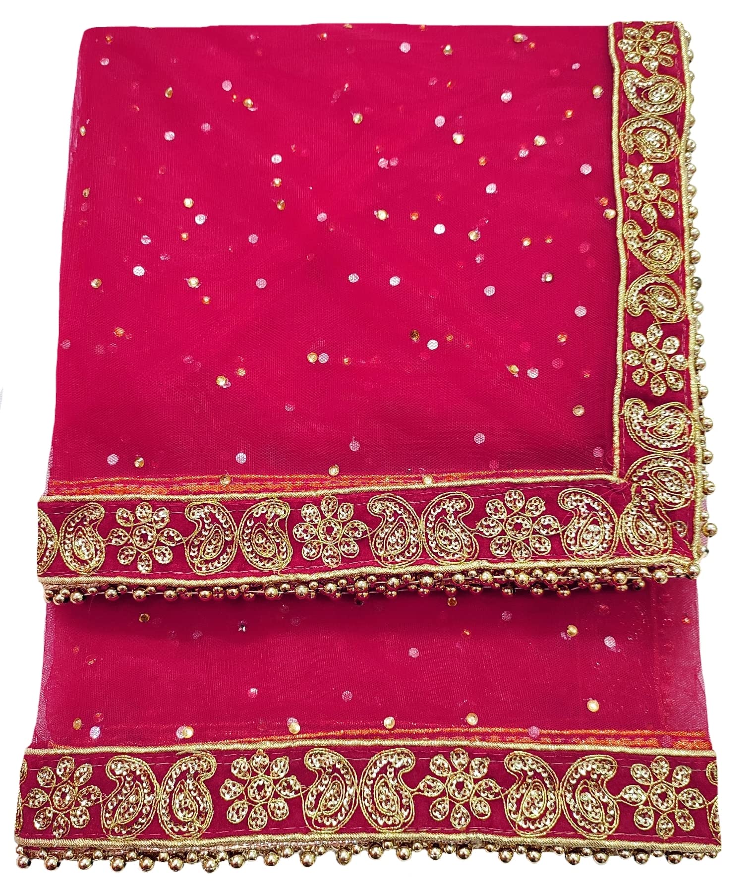 Navti Creations Women Wedding Bridal Net Dupatta With New Kerry Embroidery Border (4 Side Moti Lace,Length -2. 25M) (Pink (Raani))