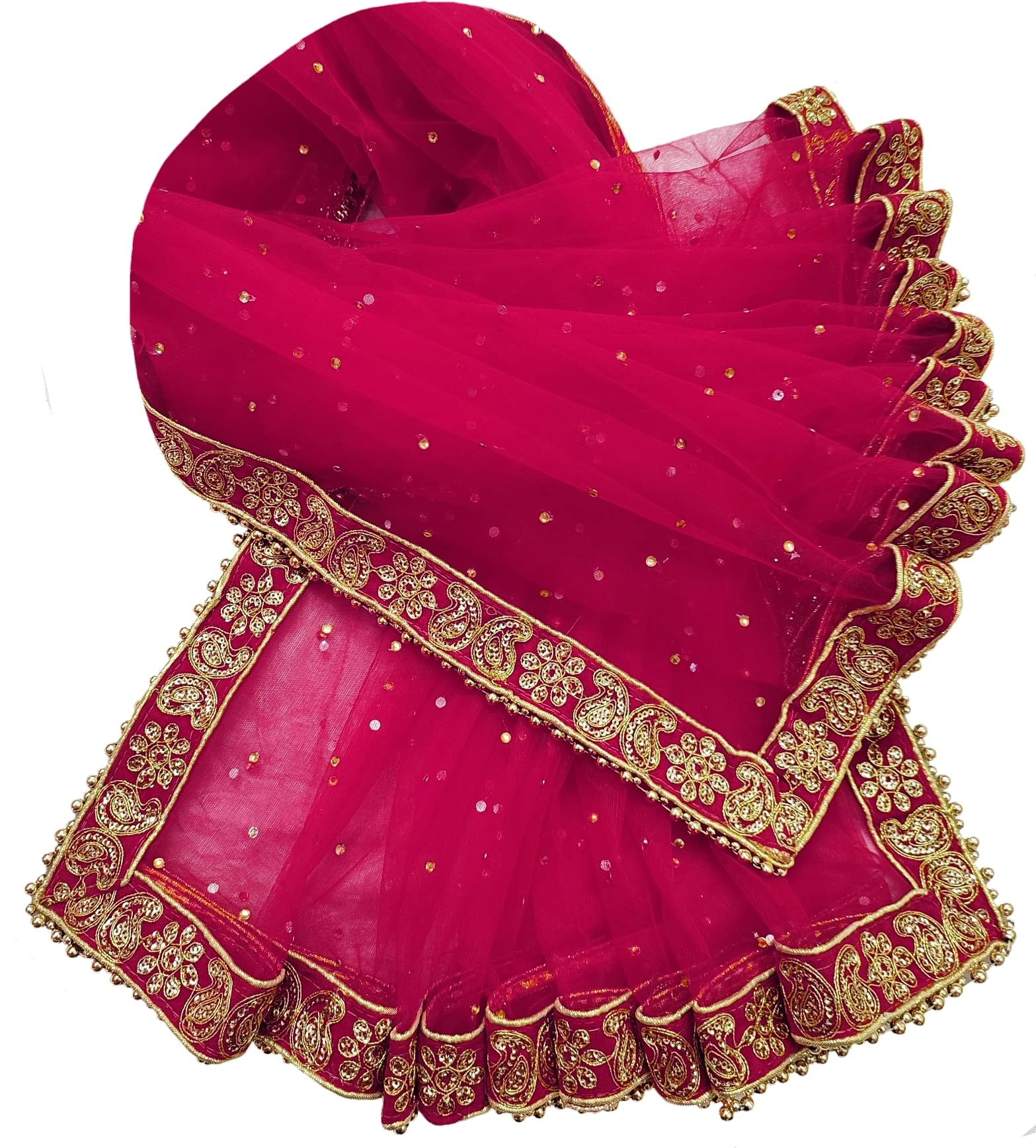 Women's wedding bridal Net Dupatta with Kerry Embroidery border and 4 side moti lace. This is original dupatta by NAVTI CREATIONS. This dupatta is very light in weight.