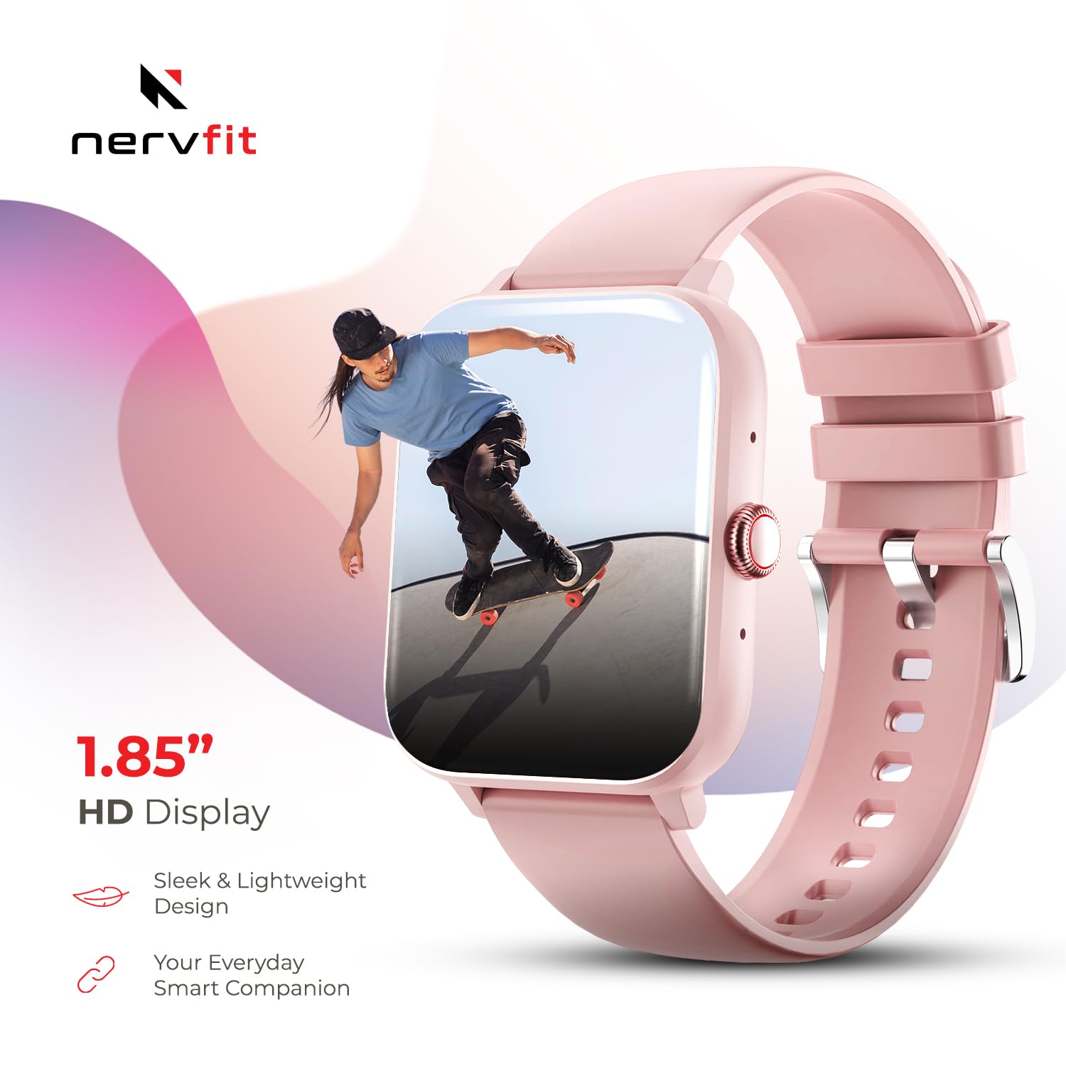 Nervfit Vibe Smartwatch with 1.85" LED Display | Bluetooth Calling | Waterproof | Heart Rate & SpO2 Tracking | Sleep & Stress Monitor | 5-Day Battery | Sports Modes (Orchid Pink)