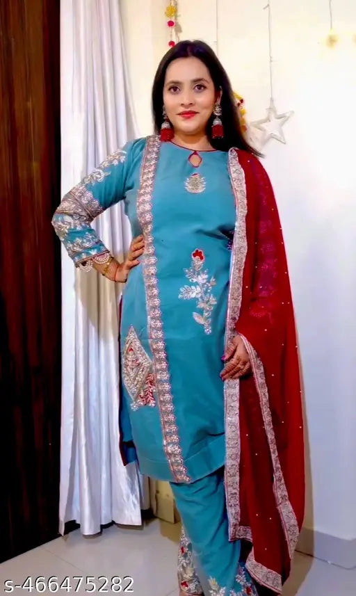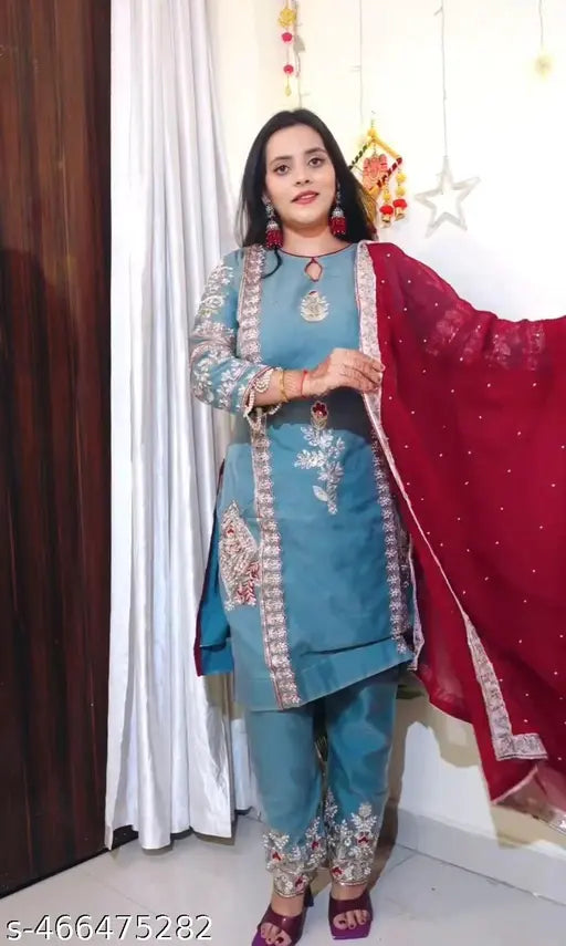 Free Size (Bust Size44 in, Shoulder Size 15.5 in, Kurta Waist Size 42 in, Kurta Length Size 42 in, Bottom Waist Size 44 in, Bottom Length Size 39 in, Duppatta Length Size 2.15 in)